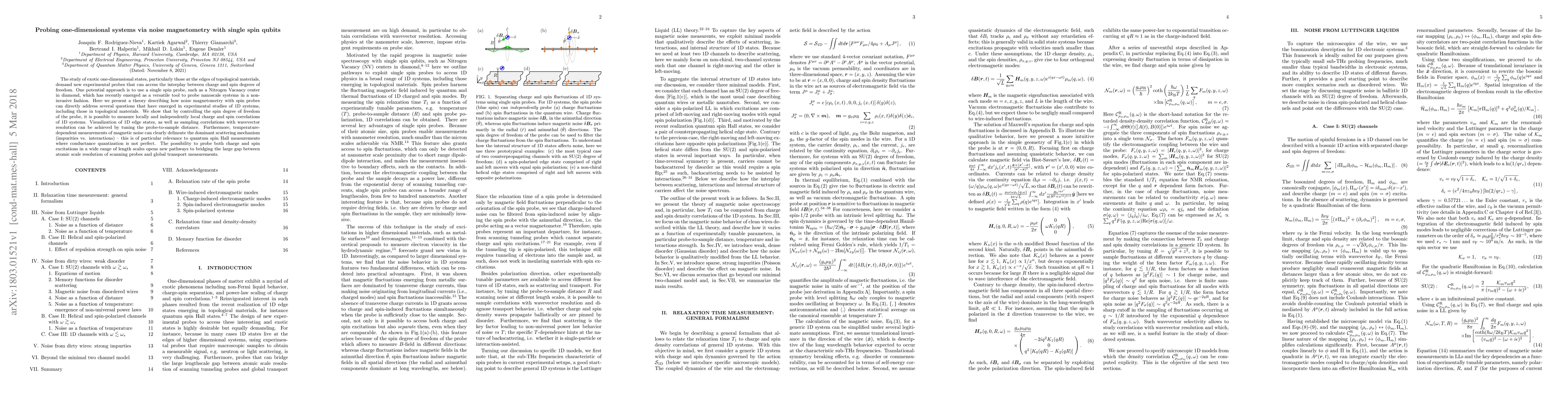 This paper proposes using single spin qubits, like Nitrogen Vacancy centers in diamond, for noise magnetometry to probe one-dimensional topological materials. It demonstrates how this method can measure local charge and spin correlations, visualize edge states, and distinguish between impurity and interaction scattering mechanisms.