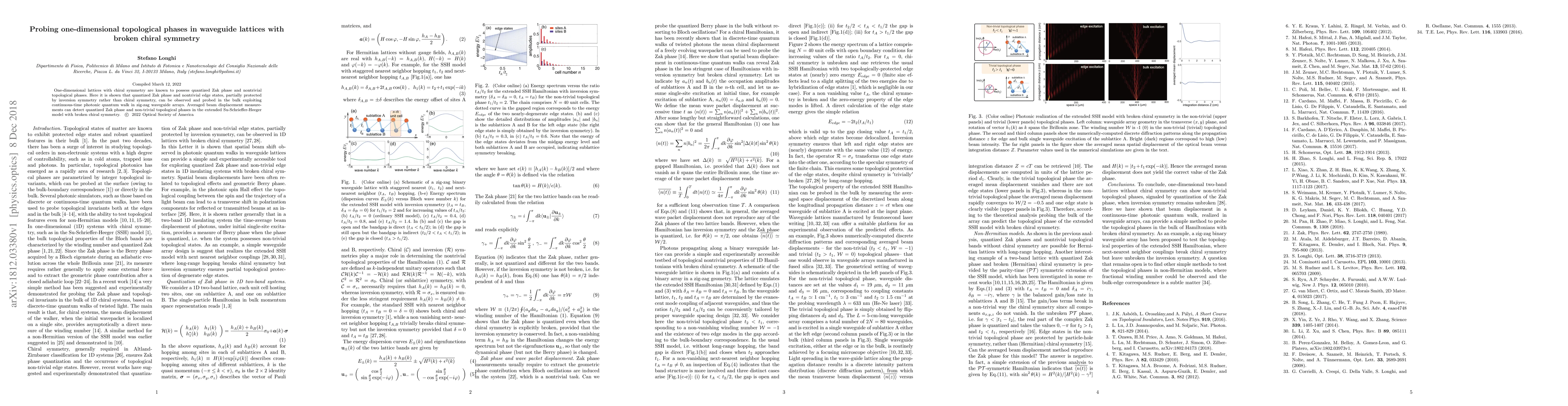 This paper investigates one-dimensional topological phases in waveguide lattices with broken chiral symmetry, demonstrating that quantized Zak phase and nontrivial edge states can be observed using continuous-time photonic quantum walks. Measurements of averaged beam displacement reveal these topological phases in the Su-Schrieffer-Heeger model.