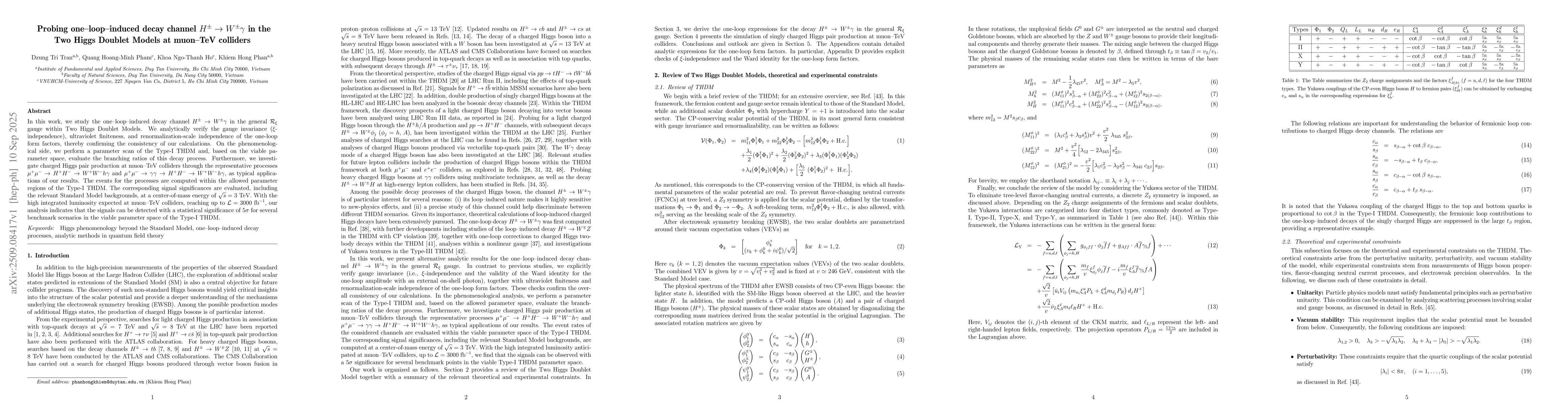 In this work, we study the one-loop--induced decay channel $H^{\pm} \rightarrow W^{\pm}\gamma$ in the general $\mathcal{R}_{\xi}$ gauge within Two Higgs Doublet Models. We analytically verify the gauge invariance ($\xi$-independence), ultraviolet finiteness, and renormalization-scale independence of the one-loop form factors, thereby confirming the consistency of our calculations. On the phenomenological side, we perform a parameter scan of the Type-I THDM and, based on the viable parameter space, evaluate the branching ratios of this decay process. Furthermore, we investigate charged Higgs pair production at muon-TeV colliders through the representative processes $\mu^+\mu^- \rightarrow H^{+}H^{-} \rightarrow W^+W^- h\gamma$ and $\mu^+\mu^- \rightarrow \gamma\gamma \rightarrow H^{+}H^{-} \rightarrow W^+W^- h\gamma$, as typical applications of our results. The events for the processes are computed within the allowed parameter regions of the Type-I THDM. The corresponding signal significances are evaluated, including the relevant Standard Model backgrounds, at a center-of-mass energy of $\sqrt{s} = 3$~TeV. With the high integrated luminosity expected at muon-TeV colliders, reaching up to $\mathcal{L} = 3000~\text{fb}^{-1}$, our analysis indicates that the signals can be detected with a statistical significance of $5\sigma$ for several benchmark scenarios in the viable parameter space of the Type-I THDM.