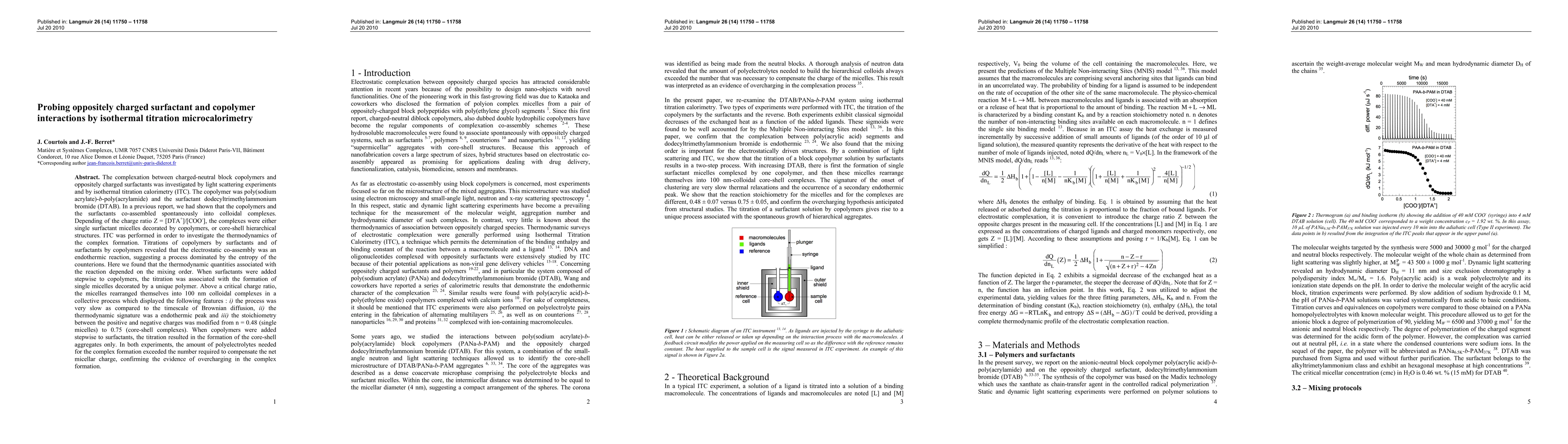 A novel approach combining isothermal titration calorimetry with small-angle neutron scattering was employed to investigate the thermodynamics of complexation between oppositely charged copolymers and surfactants.