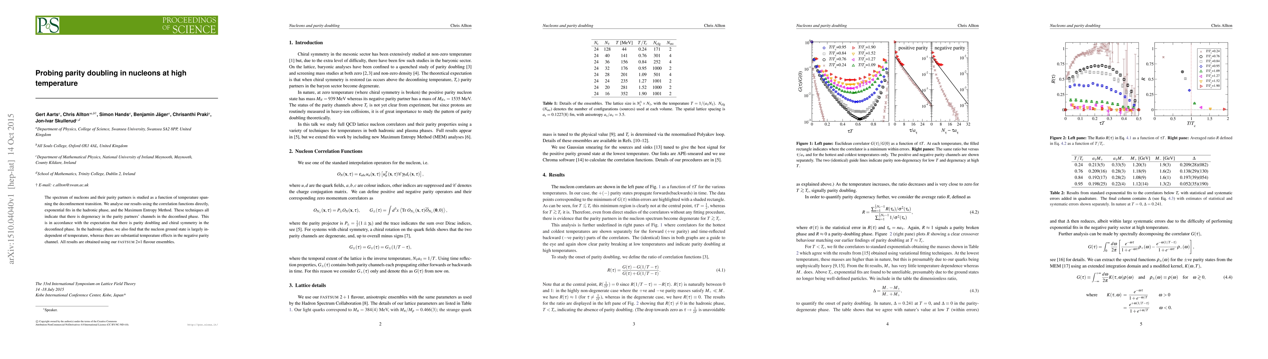 The spectrum of nucleons and their parity partners is studied as a function of temperature spanning the deconfinement transition. We analyse our results using the correlation functions directly, exponential fits in the hadronic phase, and the Maximum Entropy Method. These techniques all indicate that there is degeneracy in the parity partners' channels in the deconfined phase. This is in accordance with the expectation that there is parity doubling and chiral symmetry in the deconfined phase. In the hadronic phase, we also find that the nucleon ground state is largely independent of temperature, whereas there are substantial temperature effects in the negative parity channel. All results are obtained using our FASTSUM 2+1 flavour ensembles.