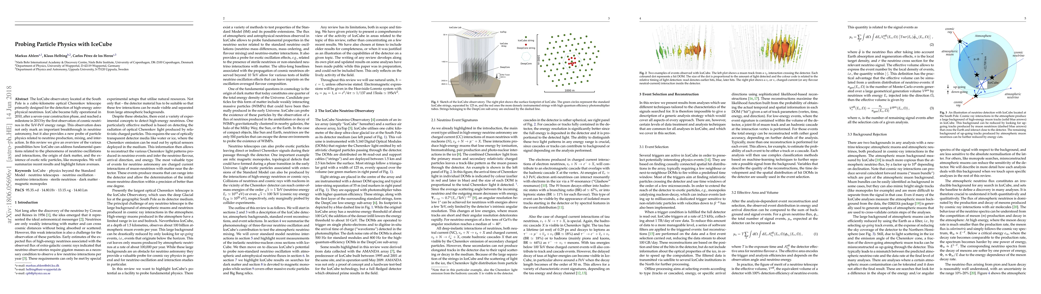 The IceCube observatory located at the South Pole is a cubic-kilometre optical Cherenkov telescope primarily designed for the detection of high-energy astrophysical neutrinos. IceCube became fully operational in 2010, after a seven-year construction phase, and reached a milestone in 2013 by the first observation of cosmic neutrinos in the TeV-PeV energy range. This observation does not only mark an important breakthrough in neutrino astronomy, but it also provides a new probe of particle physics related to neutrino production, mixing, and interaction. In this review we give an overview of the various possibilities how IceCube can address fundamental questions related to the phenomena of neutrino oscillations and interactions, the origin of dark matter, and the existence of exotic relic particles, like monopoles. We will summarize recent results and highlight future avenues.