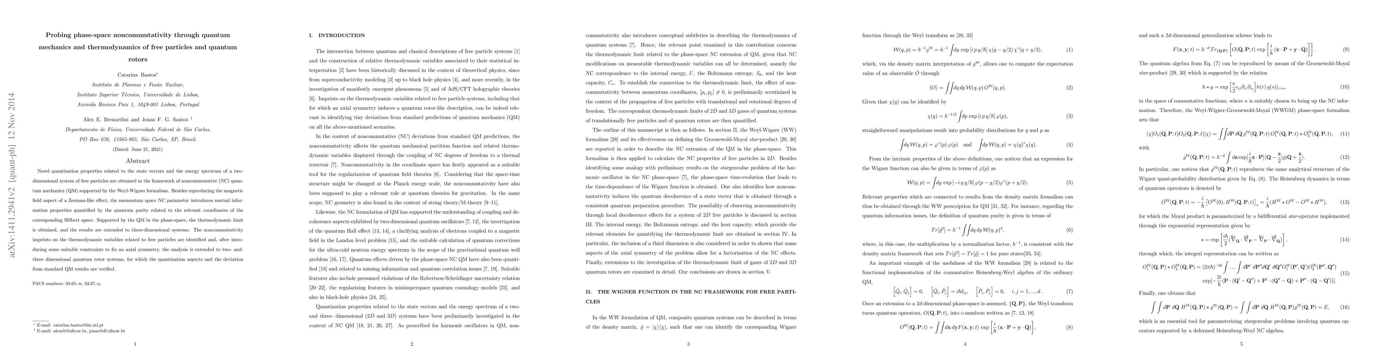 Novel quantization properties related to the state vectors and the energy spectrum of a two-dimensional system of free particles are obtained in the framework of noncommutative (NC) quantum mechanics (QM) supported by the Weyl-Wigner formalism. Besides reproducing the magnetic field aspect of a Zeeman-like effect, the momentum space NC parameter introduces mutual information properties quantified by the quantum purity related to the relevant coordinates of the corresponding Hilbert space. Supported by the QM in the phase-space, the thermodynamic limit is obtained, and the results are extended to three-dimensional systems. The noncommutativity imprints on the thermodynamic variables related to free particles are identified and, after introducing some suitable constraints to fix an axial symmetry, the analysis is extended to two- and- three dimensional quantum rotor systems, for which the quantization aspects and the deviation from standard QM results are verified.
