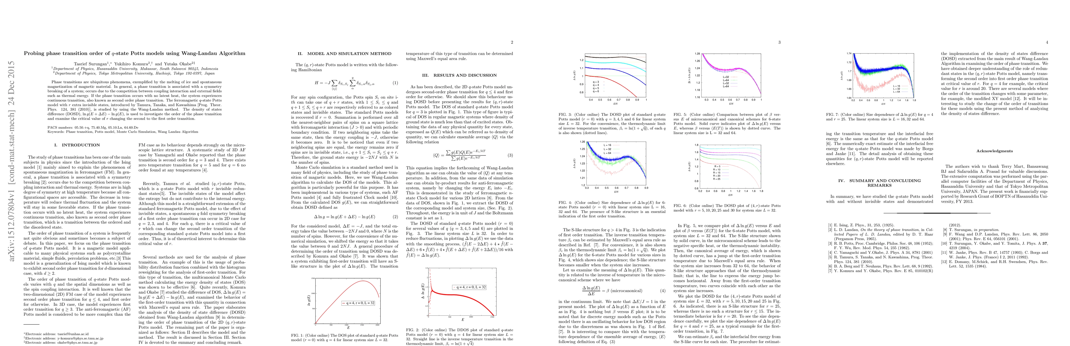 Researchers used the Wang-Landau algorithm to study the phase transition of a $q$-state Potts model, finding that changing the number of extra invisible states can change the transition from second-order to first-order.