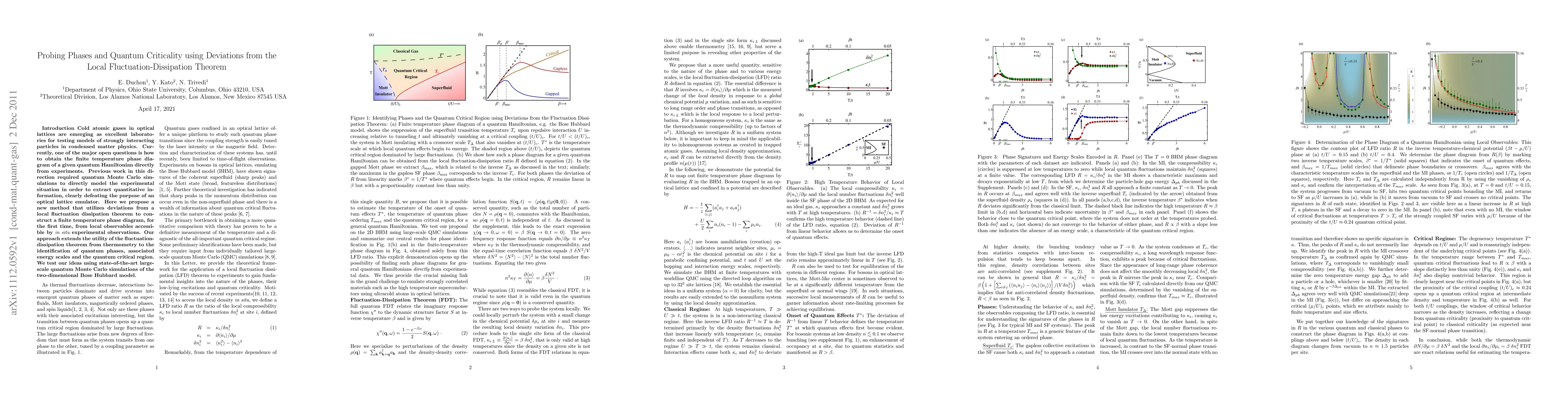 Introduction Cold atomic gases in optical lattices are emerging as excellent laboratories for testing models of strongly interacting particles in condensed matter physics. Currently, one of the major open questions is how to obtain the finite temperature phase diagram of a given quantum Hamiltonian directly from experiments. Previous work in this direction required quantum Monte Carlo simulations to directly model the experimental situation in order to extract quantitative information, clearly defeating the purpose of an optical lattice emulator. Here we propose a new method that utilizes deviations from a local fluctuation dissipation theorem to construct a finite temperature phase diagram, for the first time, from local observables accessible by in situ experimental observations. Our approach extends the utility of the fluctuation-dissipation theorem from thermometry to the identification of quantum phases, associated energy scales and the quantum critical region. We test our ideas using state-of-the-art large-scale quantum Monte Carlo simulations of the two-dimensional Bose Hubbard model.
