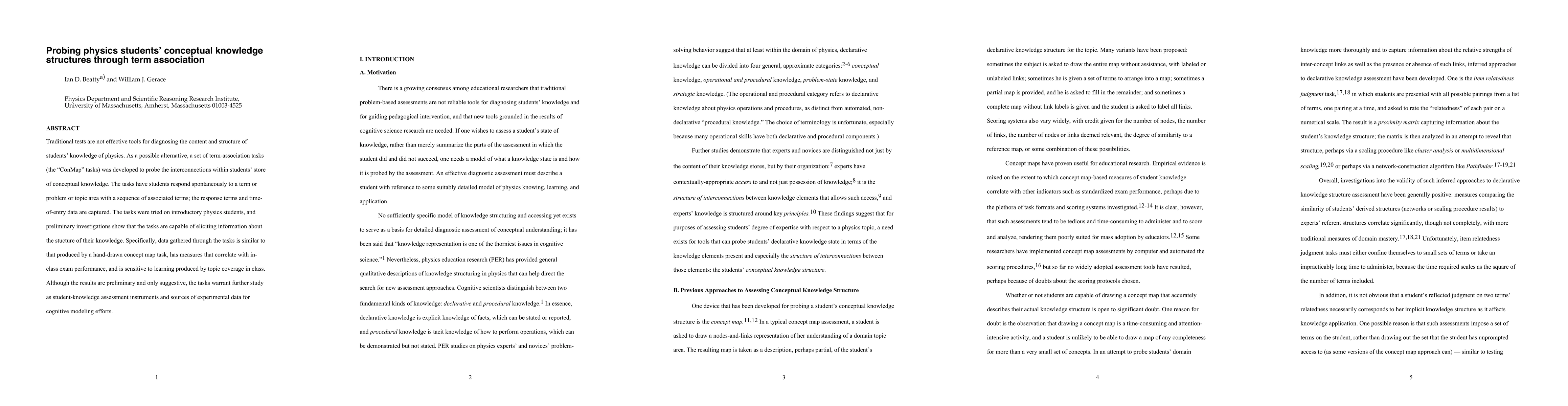 Traditional tests are not effective tools for diagnosing the content and structure of students' knowledge of physics. As a possible alternative, a set of term-association tasks (the "ConMap" tasks) was developed to probe the interconnections within students' store of conceptual knowledge. The tasks have students respond spontaneously to a term or problem or topic area with a sequence of associated terms; the response terms and timeof- entry data are captured. The tasks were tried on introductory physics students, and preliminary investigations show that the tasks are capable of eliciting information about the stucture of their knowledge. Specifically, data gathered through the tasks is similar to that produced by a hand-drawn concept map task, has measures that correlate with inclass exam performance, and is sensitive to learning produced by topic coverage in class. Although the results are preliminary and only suggestive, the tasks warrant further study as student-knowledge assessment instruments and sources of experimental data for cognitive modeling efforts.