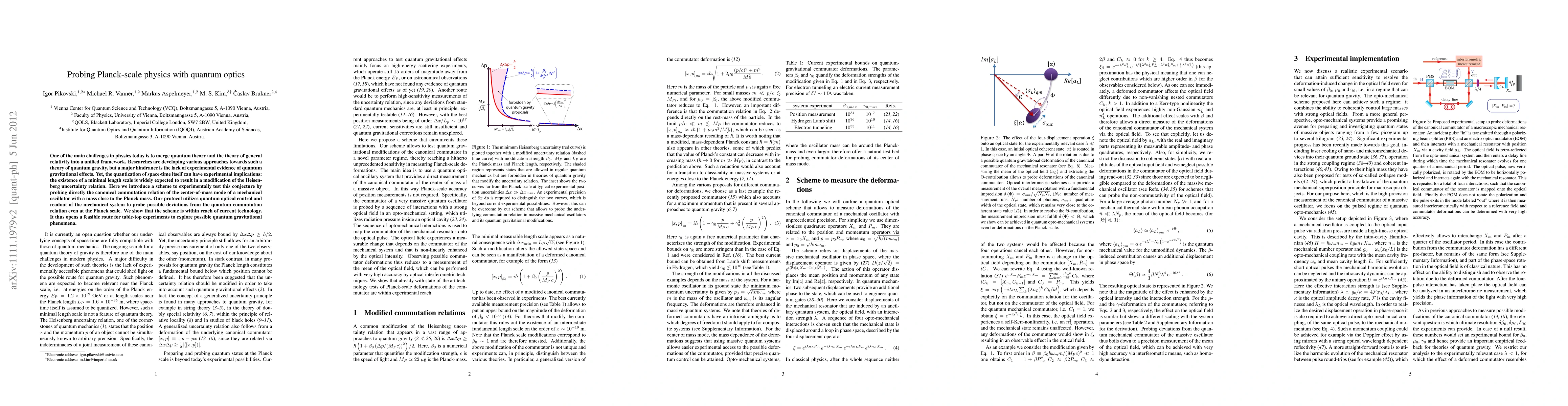 One of the main challenges in physics today is to merge quantum theory and the theory of general relativity into a unified framework. Various approaches towards developing such a theory of quantum gravity are pursued, but the lack of experimental evidence of quantum gravitational effects thus far is a major hindrance. Yet, the quantization of space-time itself can have experimental implications: the existence of a minimal length scale is widely expected to result in a modification of the Heisenberg uncertainty relation. Here we introduce a scheme that allows an experimental test of this conjecture by probing directly the canonical commutation relation of the center of mass mode of a massive mechanical oscillator with a mass close to the Planck mass. Our protocol utilizes quantum optical control and readout of the mechanical system to probe possible deviations from the quantum commutation relation even at the Planck scale. We show that the scheme is within reach of current technology. It thus opens a feasible route for tabletop experiments to test possible quantum gravitational phenomena.