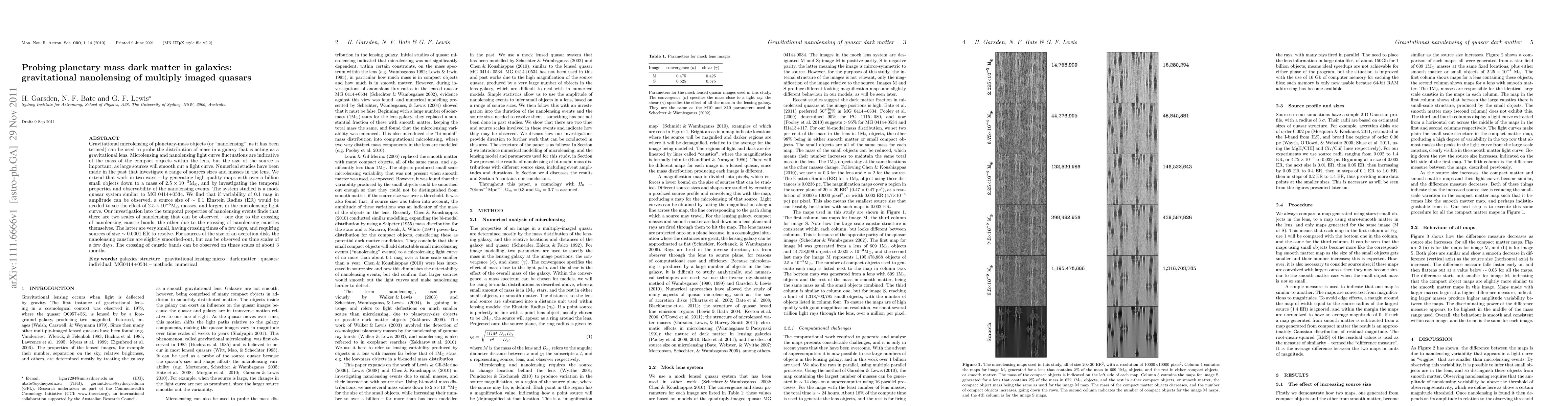 Gravitational microlensing of planetary-mass objects (or "nanolensing", as it has been termed) can be used to probe the distribution of mass in a galaxy that is acting as a gravitational lens. Microlensing and nanolensing light curve fluctuations are indicative of the mass of the compact objects within the lens, but the size of the source is important, as large sources will smooth out a light curve. Numerical studies have been made in the past that investigate a range of sources sizes and masses in the lens. We extend that work in two ways - by generating high quality maps with over a billion small objects down to a mass of 2.5\times10-5M\odot, and by investigating the temporal properties and observability of the nanolensing events. The system studied is a mock quasar system similar to MG 0414+0534. We find that if variability of 0.1 mag in amplitude can be observed, a source size of ~ 0.1 Einstein Radius (ER) would be needed to see the effect of 2.5\times10-5M\odot masses, and larger, in the microlensing light curve. Our investigation into the temporal properties of nanolensing events finds that there are two scales of nanolensing that can be observed - one due to the crossing of nanolensing caustic bands, the other due to the crossing of nanolensing caustics themselves. The latter are very small, having crossing times of a few days, and requiring sources of size ~ 0.0001 ER to resolve. For sources of the size of an accretion disk, the nanolensing caustics are slightly smoothed-out, but can be observed on time scales of a few days. The crossing of caustic bands can be observed on times scales of about 3 months.