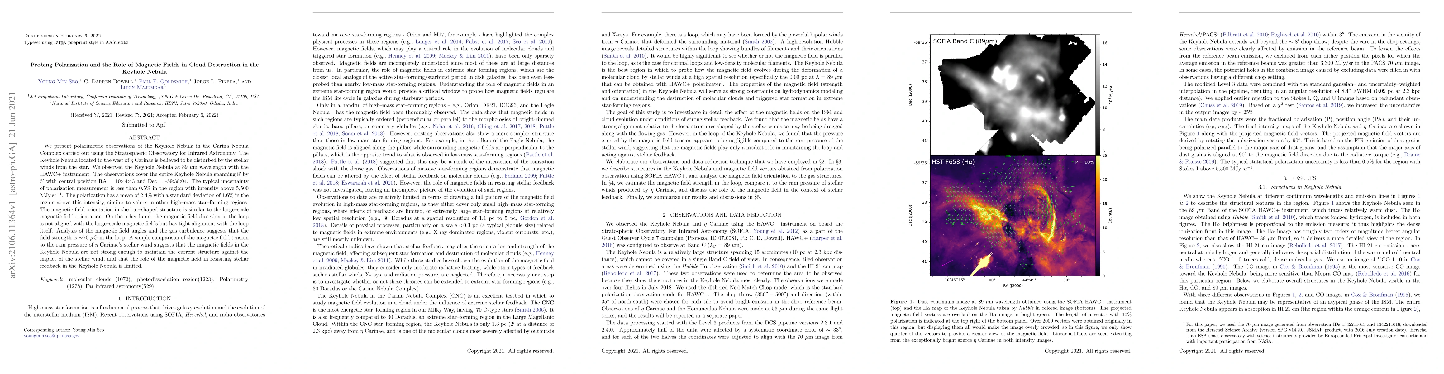 This study uses polarimetric observations at 89 µm to investigate the Keyhole Nebula's polarization and magnetic fields, revealing a mean polarization of 2.4% and suggesting that magnetic fields are insufficient to counteract the stellar wind from $\eta$ Carinae, limiting their role in resisting cloud destruction.