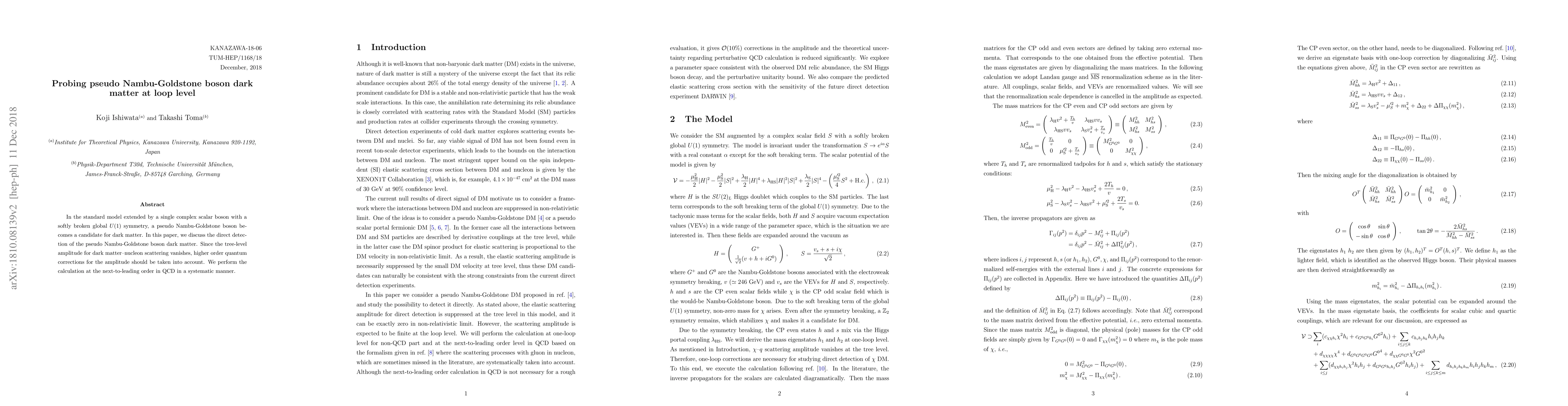 This paper explores the possibility of detecting pseudo Nambu-Goldstone boson dark matter in the context of an extended standard model with a softly broken global U(1) symmetry. It focuses on higher-order quantum corrections for the dark matter-nucleon scattering, which is essential since the tree-level amplitude vanishes, using next-to-leading order QCD calculations.