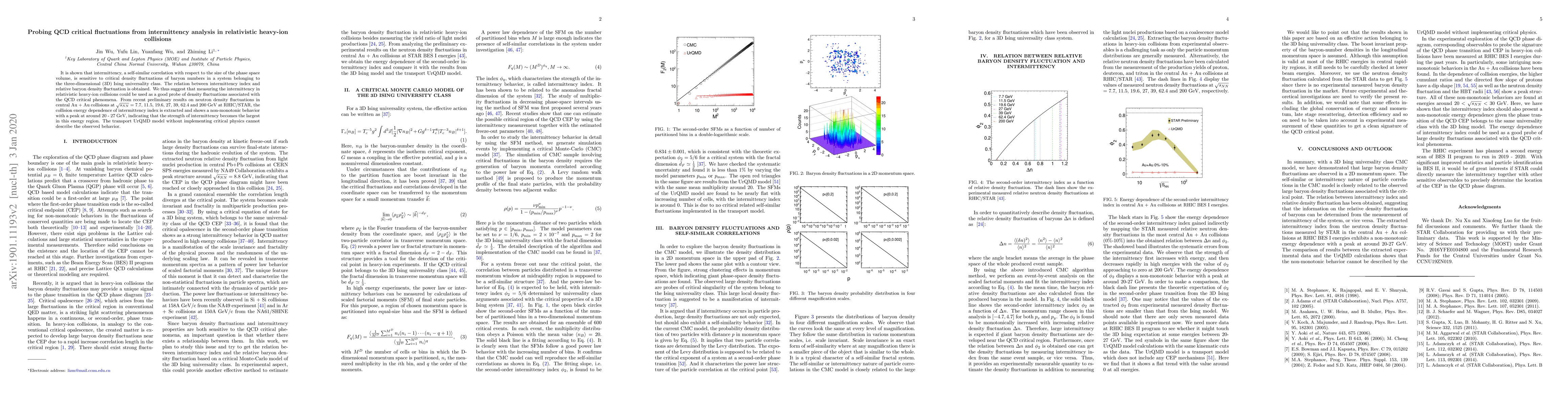 This paper demonstrates that intermittency analysis in relativistic heavy-ion collisions can reveal critical fluctuations in Quantum Chromodynamics (QCD) by correlating the intermittency index with baryon density fluctuations. The study finds a non-monotonic energy dependence of intermittency with a peak at 20-27 GeV, suggesting enhanced critical phenomena in this energy range, which cannot be explained by standard transport models.