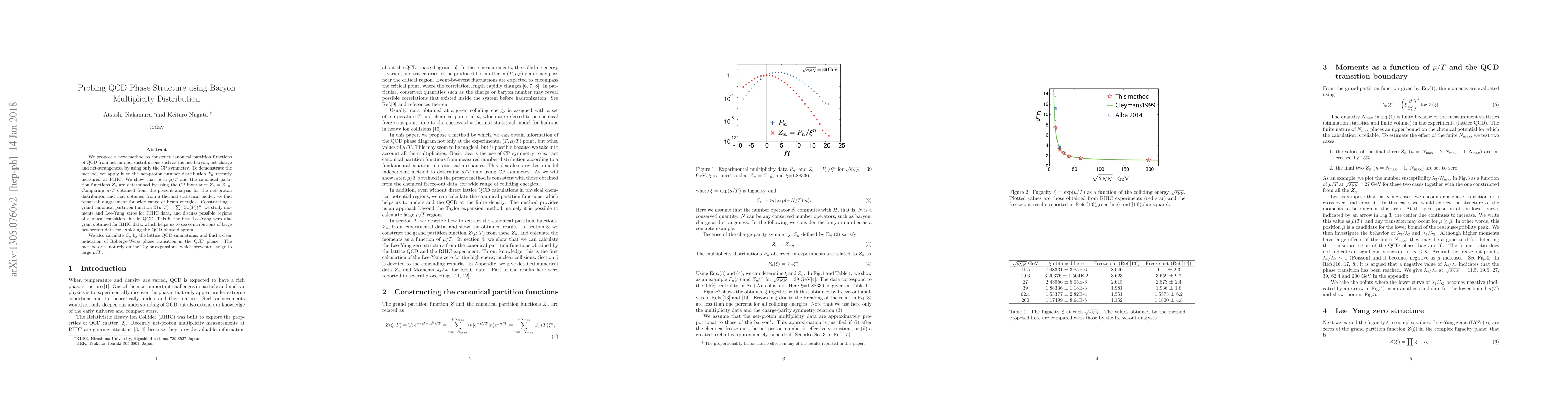 The canonical partition functions $Z_n$ and the number distributions $P_n$ which are obervable in experiments, are related by a single parameter, the fugacities $\xi=\exp(\mu/T)$. With the charge parity invariance, $Z_n$ and $\xi$ can be determined. Thermodynamic quantities such as the number density susceptibility and the kurtosis are then calculated from the grand canonical partition function $Z(\xi,T)=\sum Z_n(T) \xi^n$, ($n=-N_{\rm max},\cdots, N_{\rm max}$), for any chemical potential $\mu$, although the region over which the results are reliable for these quantities is constrained by $N_{\rm max}$. We then calculate the Lee-Yang zeros, which are the zeros of $Z(\xi)$ in the complex fugacity plane, as poles of $d\log Z(\xi)/d\xi$ by using the Cauchy integral theorem. With the help of a multiple precision library, this method provides any precision required without misidentification of the zeros. We analyse $Z_n$ from the net-proton number distributions recently measured at the Relativistic Heavy Ion Collider (RHIC) by assuming the net-proton number is approximately propotional to that of the baryon after the freeze-out, and calculate the moments. We also evaluate the Lee-Yang zero structures obtained from RHIC data and compare them with those obtained from lattice quantum chromodynamics (QCD) calculations. Possible regions of QCD phase transition lines are estimated from the thermodynamics quantities and the Lee-Yang zeros. We discuss how the limited $N_{\rm max}$ in both experimental and numerical studies affects the reliability of the thermodynamic results and Lee-Yang zeros.