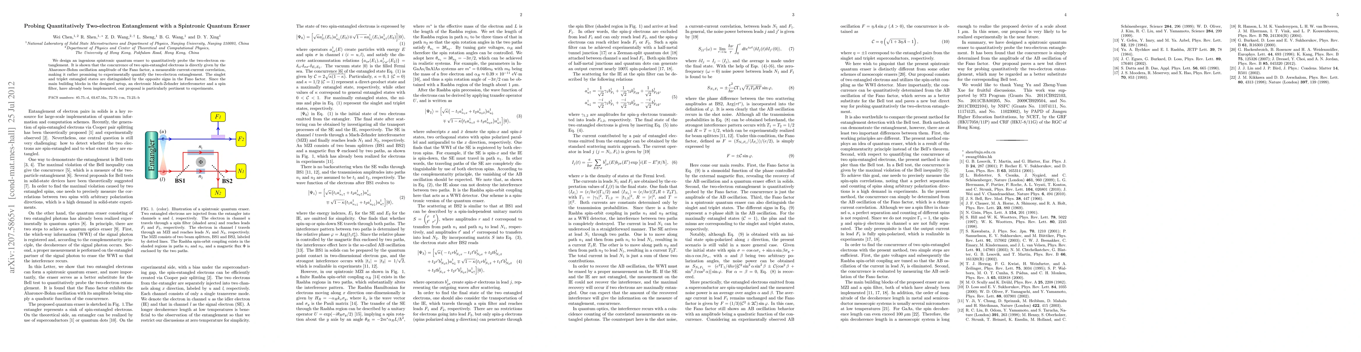 This paper proposes a spintronic quantum eraser to quantitatively measure two-electron entanglement, showing that the concurrence is directly linked to the Aharonov-Bohm oscillation amplitude of the Fano factor. The setup distinguishes singlet and triplet states via the Fano factor's sign, leveraging existing electronic components.