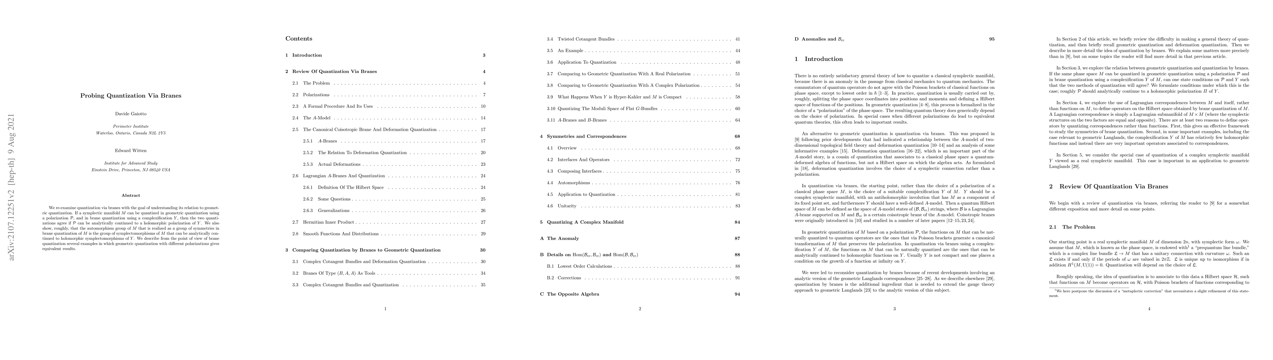 We re-examine quantization via branes with the goal of understanding its relation to geometric quantization. If a symplectic manifold $M$ can be quantized in geometric quantization using a polarization ${\mathcal P}$, and in brane quantization using a complexification $Y$, then the two quantizations agree if ${\mathcal P}$ can be analytically continued to a holomorphic polarization of $Y$. We also show, roughly, that the automorphism group of $M$ that is realized as a group of symmetries in brane quantization of $M$ is the group of symplectomorphisms of $M$ that can be analytically continued to holomorphic symplectomorphisms of $Y$. We describe from the point of view of brane quantization several examples in which geometric quantization with different polarizations gives equivalent results.