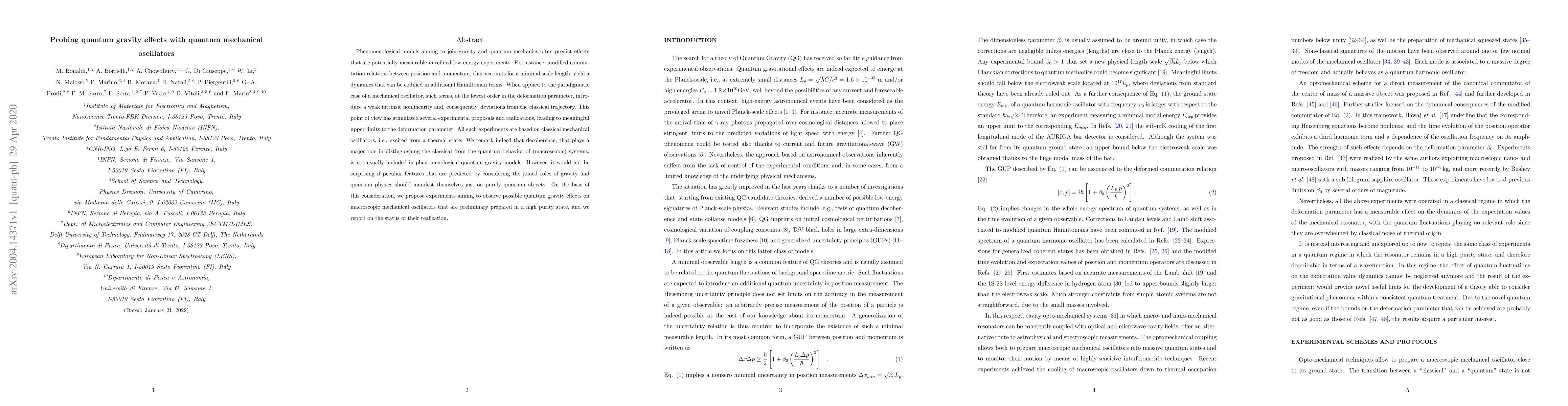 Phenomenological models aiming to join gravity and quantum mechanics often predict effects that are potentially measurable in refined low-energy experiments. For instance, modified commutation relations between position and momentum, that accounts for a minimal scale length, yield a dynamics that can be codified in additional Hamiltonian terms. When applied to the paradigmatic case of a mechanical oscillator, such terms, at the lowest order in the deformation parameter, introduce a weak intrinsic nonlinearity and, consequently, deviations from the classical trajectory. This point of view has stimulated several experimental proposals and realizations, leading to meaningful upper limits to the deformation parameter. All such experiments are based on classical mechanical oscillators, i.e., excited from a thermal state. We remark indeed that decoherence, that plays a major role in distinguishing the classical from the quantum behavior of (macroscopic) systems, is not usually included in phenomenological quantum gravity models. However, it would not be surprising if peculiar features that are predicted by considering the joined roles of gravity and quantum physics should manifest themselves just on purely quantum objects. On the base of this consideration, we propose experiments aiming to observe possible quantum gravity effects on macroscopic mechanical oscillators that are preliminary prepared in a high purity state, and we report on the status of their realization.