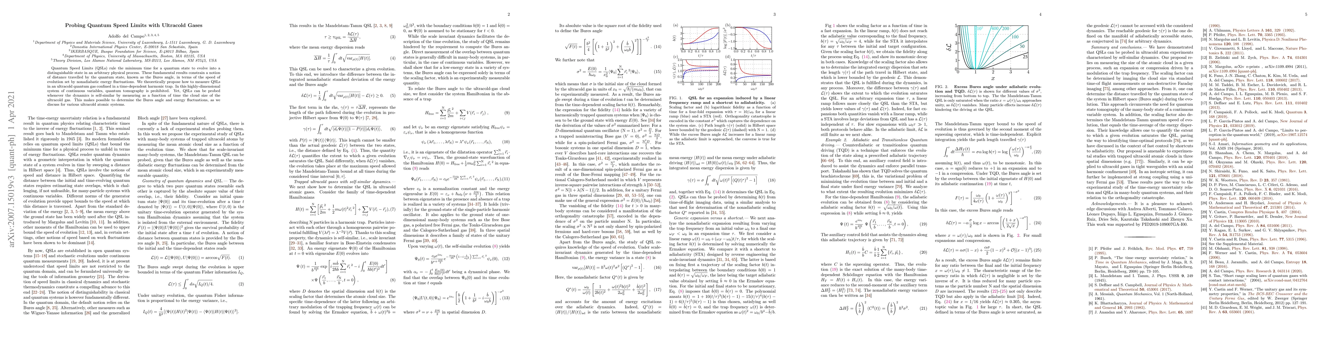 Quantum Speed Limits (QSLs) rule the minimum time for a quantum state to evolve into a distinguishable state in an arbitrary physical process. These fundamental results constrain a notion of distance travelled by the quantum state, known as the Bures angle, in terms of the speed of evolution set by nonadiabatic energy fluctuations. We theoretically propose how to measure QSLs in an ultracold quantum gas confined in a time-dependent harmonic trap. In this highly-dimensional system of continuous variables, quantum tomography is prohibited. Yet, QSLs can be probed whenever the dynamics is self-similar by measuring as a function of time the cloud size of the ultracold gas. This makes possible to determine the Bures angle and energy fluctuations, as we discuss for various ultracold atomic systems.