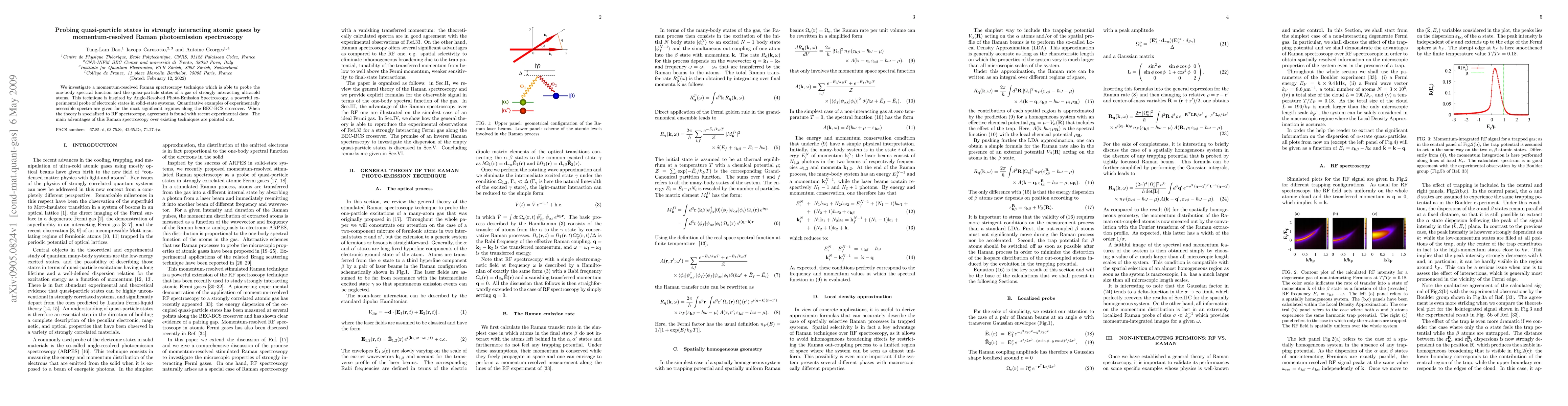 This paper explores a momentum-resolved Raman spectroscopy technique to investigate the quasi-particle states in strongly interacting ultracold atomic gases, offering insights into the BEC-BCS crossover. It demonstrates agreement with recent experimental data and highlights the technique's advantages over existing methods.