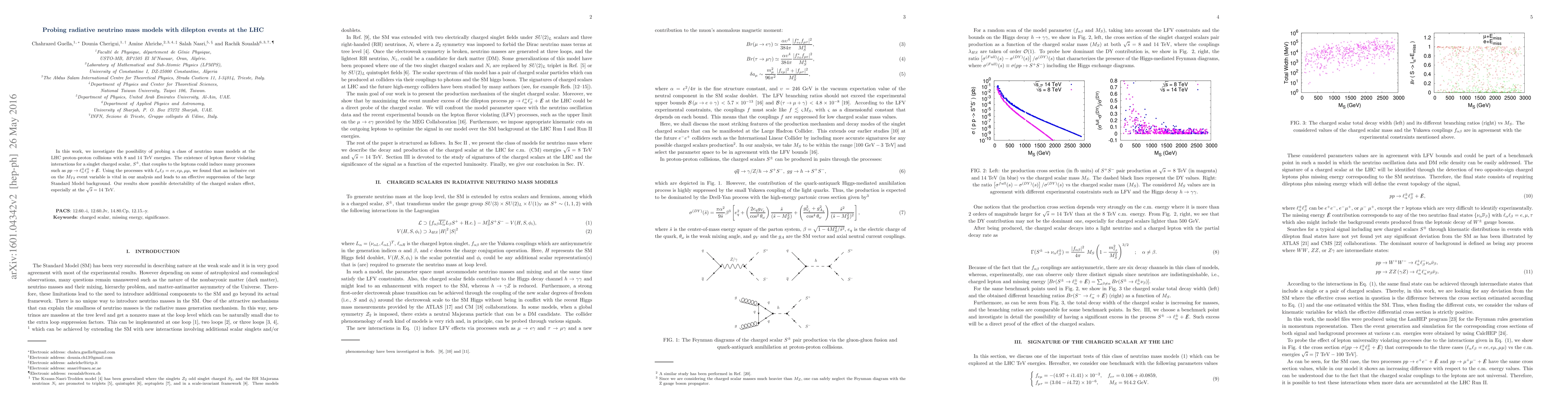 This research explores the potential of the Large Hadron Collider (LHC) to probe radiative neutrino mass models through dilepton events. It finds that lepton flavor violating interactions involving a charged scalar $S^{\pm}$ can be detected, especially at 14 TeV, using an inclusive cut on the $M_{T2}$ event variable to effectively suppress background noise.
