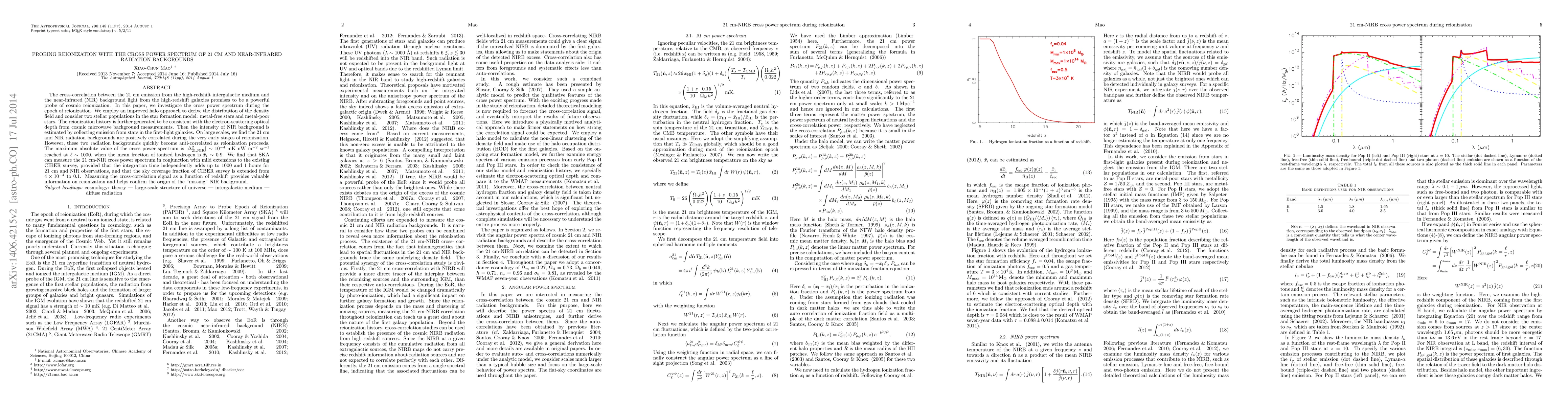 This paper explores the cross power spectrum between 21 cm signals from the high-redshift intergalactic medium and near-infrared (NIR) background light from early galaxies to study cosmic reionization. The study finds that these signals are initially positively correlated but become anti-correlated as reionization progresses, with the maximum cross power spectrum value achievable by the SKA.