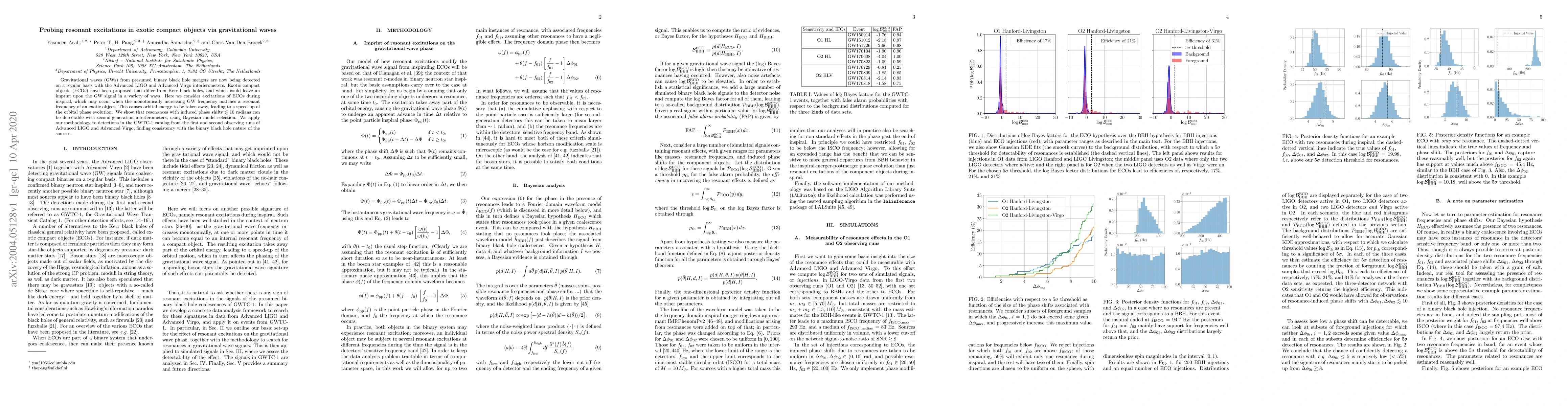 Gravitational waves (GWs) from presumed binary black hole mergers are now being detected on a regular basis with the Advanced LIGO and Advanced Virgo interferometers. Exotic compact objects (ECOs) have been proposed that differ from Kerr black holes, and which could leave an imprint upon the GW signal in a variety of ways. Here we consider excitations of ECOs during inspiral, which may occur when the monotonically increasing GW frequency matches a resonant frequency of an exotic object. This causes orbital energy to be taken away, leading to a speed-up of the orbital phase evolution. We show that resonances with induced phase shifts $\lesssim 10$ radians can be detectable with second-generation interferometers, using Bayesian model selection. We apply our methodology to detections in the GWTC-1 catalog from the first and second observing runs of Advanced LIGO and Advanced Virgo, finding consistency with the binary black hole nature of the sources.