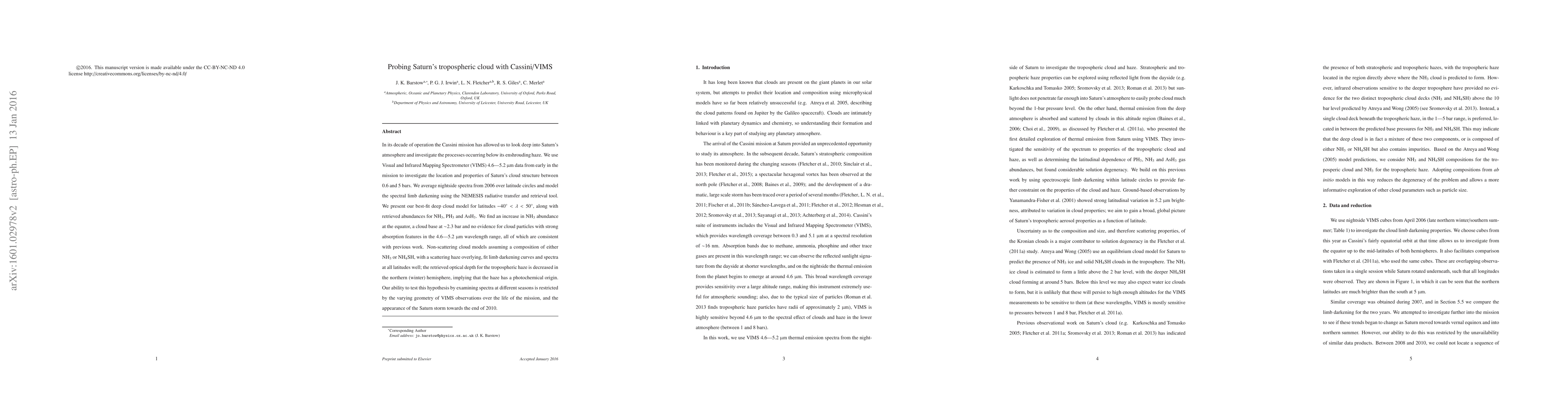 This study uses Cassini/VIMS data to model Saturn's tropospheric cloud structure, finding an NH3-dominated cloud base at ~2.3 bar and an equatorial NH3 abundance increase. Non-scattering cloud models with NH3 or NH4SH compositions fit the data, suggesting a photochemical origin for the tropospheric haze, though seasonal variations are limited by observational geometry.