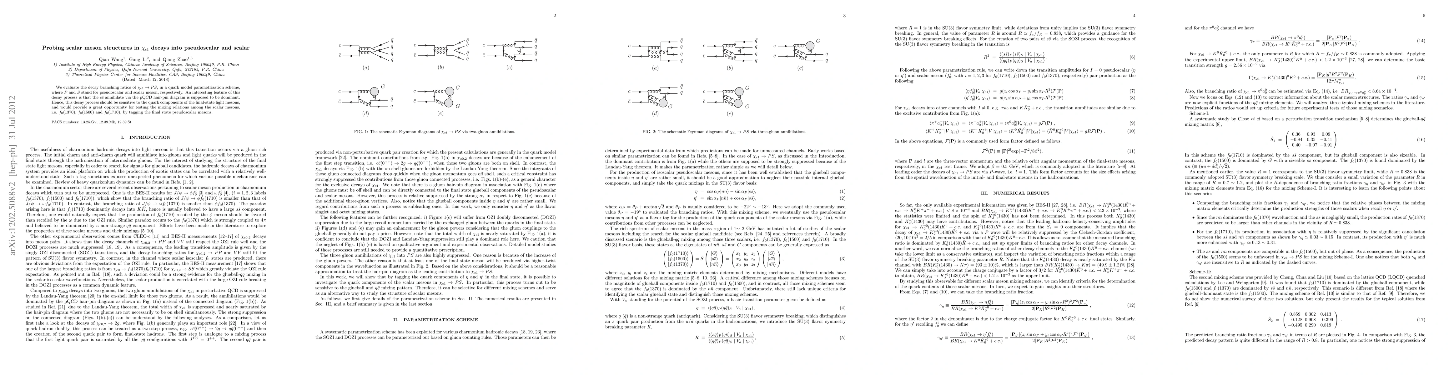 We evaluate the decay branching ratios of $\chi_{c1}\to PS$, in a quark model parametrization scheme, where $P$ and $S$ stand for pseudoscalar and scalar meson, respectively. An interesting feature of this decay process is that the $c\bar{c}$ annihilate via the pQCD hair-pin diagram is supposed to be dominant. Hence, this decay process should be sensitive to the quark components of the final-state light mesons, and would provide a great opportunity for testing the mixing relations among the scalar mesons, i.e. $f_0(1370)$, $f_0(1500)$ and $f_0(1710)$, by tagging the final state pseudoscalar mesons.