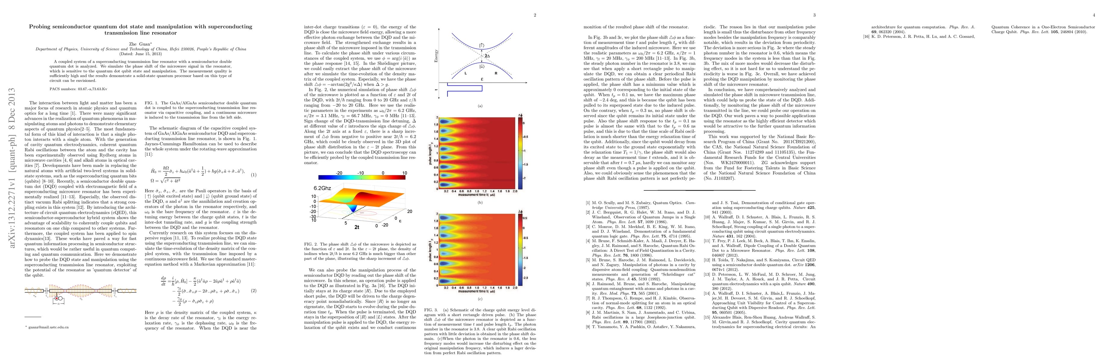 A coupled system of a superconducting transmission line resonator with a semiconductor double quantum dot is analyzed. We simulate the phase shift of the microwave signal in the resonator, which is sensitive to the quantum dot qubit state and manipulation. The measurement quality is sufficiently high and the results demonstrate a solid-state quantum processor based on this type of circuit can be envisioned.