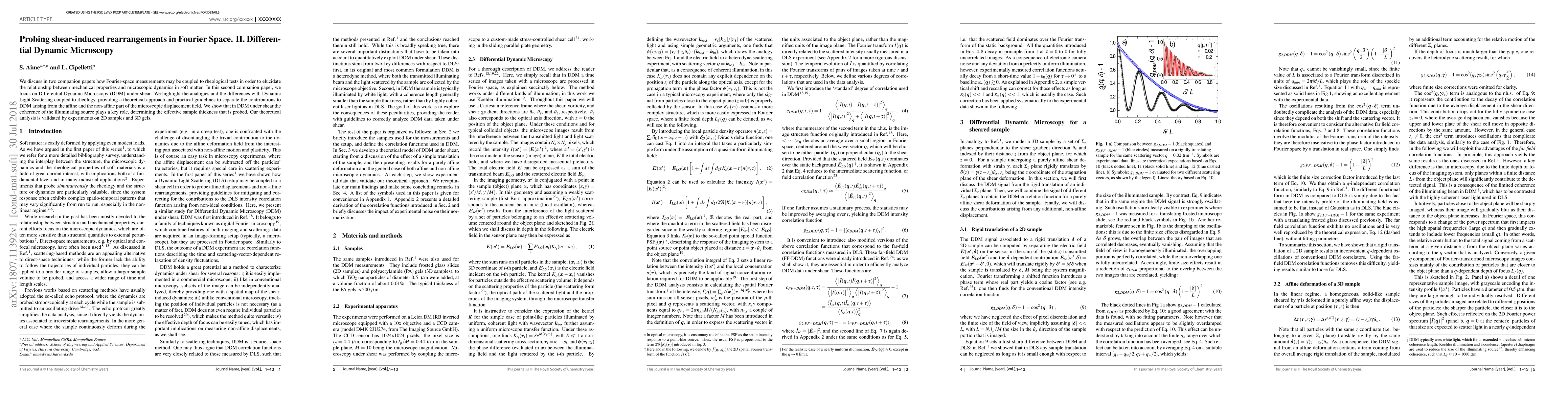 We discuss in two companion papers (arXiv:1802.03737 and the present manuscript) how Fourier-space measurements may be coupled to rheological tests in order to elucidate the relationship between mechanical properties and microscopic dynamics in soft matter. In this second companion paper, we focus on Differential Dynamic Microscopy (DDM) under shear. We highlight the analogies and the differences with Dynamic Light Scattering coupled to rheology, providing a theoretical approach and practical guidelines to separate the contributions to DDM arising from the affine and the non-affine part of the microscopic displacement field. We show that in DDM under shear the coherence of the illuminating source plays a key role, determining the effective sample thickness that is probed. Our theoretical analysis is validated by experiments on 2D samples and 3D gels.