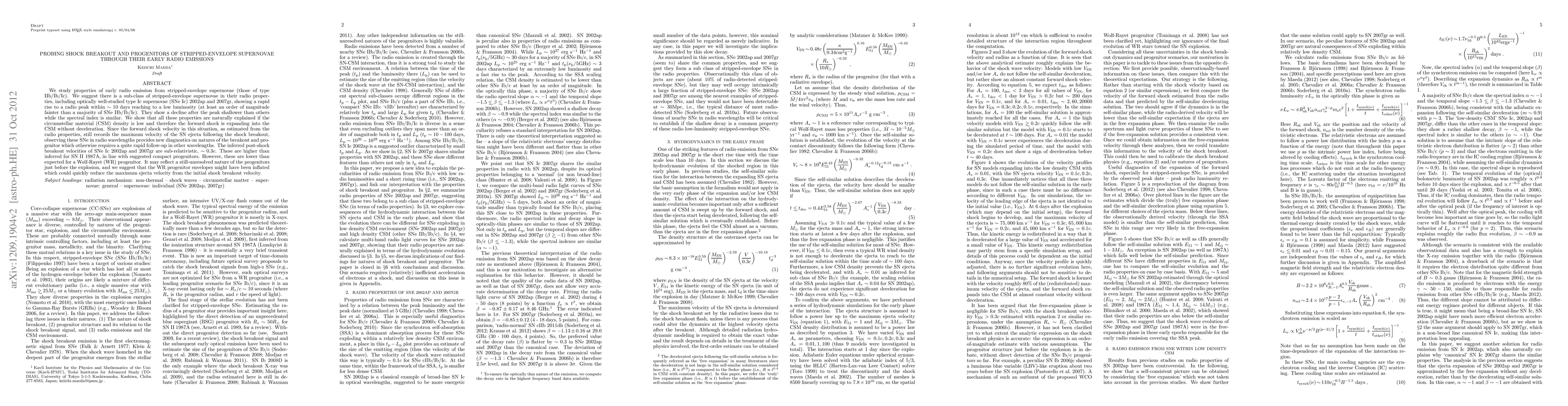 This paper investigates the early radio emissions of stripped-envelope supernovae (types IIb, Ib, and Ic), revealing a sub-class of type Ic supernovae that exhibit a rapid rise to a radio peak within 10 days at low luminosity. The study suggests these properties arise from low circumstellar material density, allowing the forward shock to expand without deceleration, providing insights into shock breakout and progenitor characteristics.