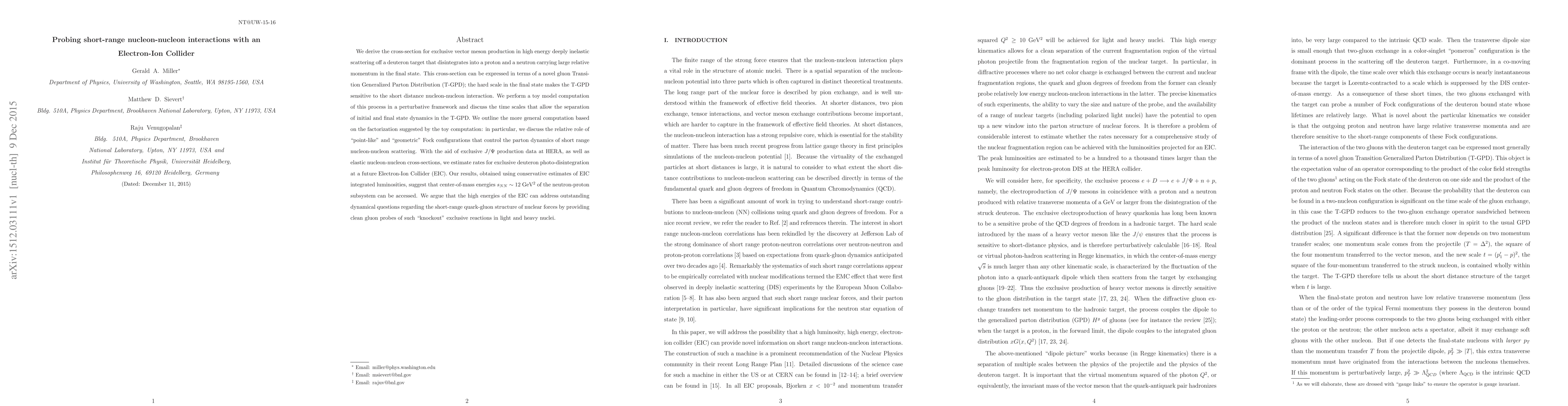 Researchers propose using an Electron-Ion Collider to study short-range nucleon-nucleon interactions, which are crucial for understanding nuclear forces. They estimate that the collider can access energies of around 12 GeV^2, allowing for clean gluon probes of these interactions.