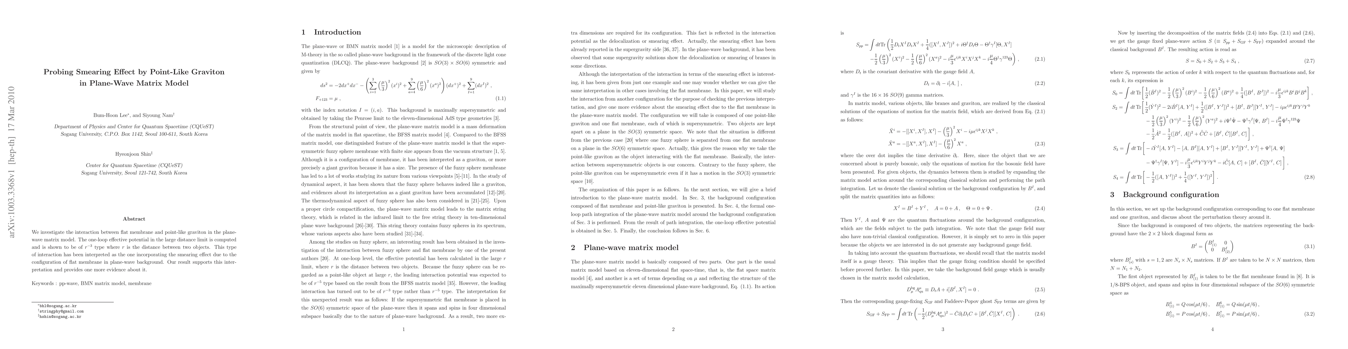 This paper examines the interaction between a flat membrane and a point-like graviton in a plane-wave matrix model, revealing a one-loop effective potential that decays as r^{-3} with distance r. This interaction supports the interpretation of incorporating smearing effects due to the flat membrane's configuration in a plane-wave background.