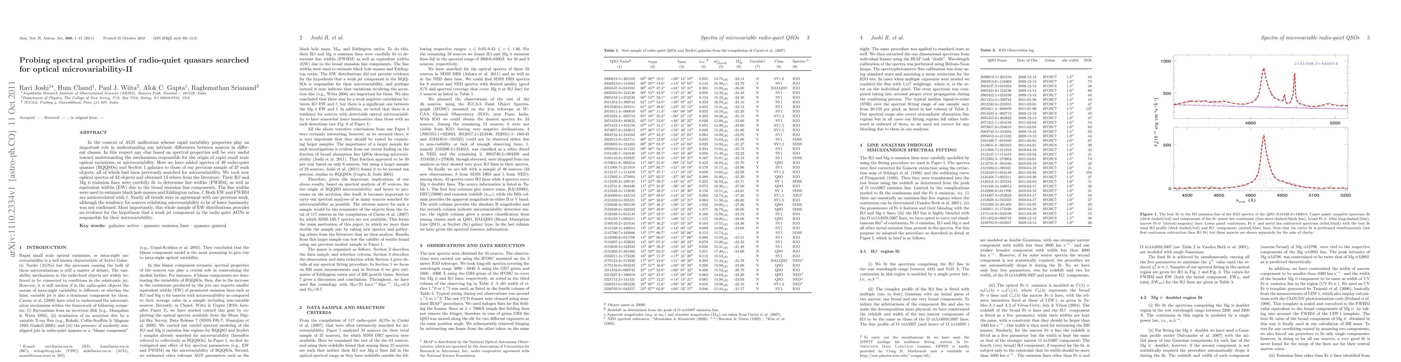 In the context of AGN unification scheme rapid variability properties play an important role in understanding any intrinsic differences between sources in different classes. In this respect any clue based on spectral properties will be very useful toward understanding the mechanisms responsible for the origin of rapid small scale optical variations, or microvariability. Here we have added spectra of 46 radio-quiet quasars (RQQSOs) and Seyfert 1 galaxies to those of our previous sample of 37 such objects, all of which had been previously searched for microvariability. We took new optical spectra of 33 objects and obtained 13 others from the literature. Their \hbeta and \mgii emission lines were carefully fit to determine line widths (FWHM) as well as equivalent widths (EW) due to the broad emission line components. The line widths were used to estimate black hole masses and Eddington ratios, $\ell$. Both EW and FWHM are anticorrelated with $\ell$. Nearly all trends were in agreement with our previous work, although the tendency for sources exhibiting microvariability to be of lower luminosity was not confirmed. Most importantly, this whole sample of EW distributions provides no evidence for the hypothesis that a weak jet component in the radio quiet AGNs is responsible for their microvariability.