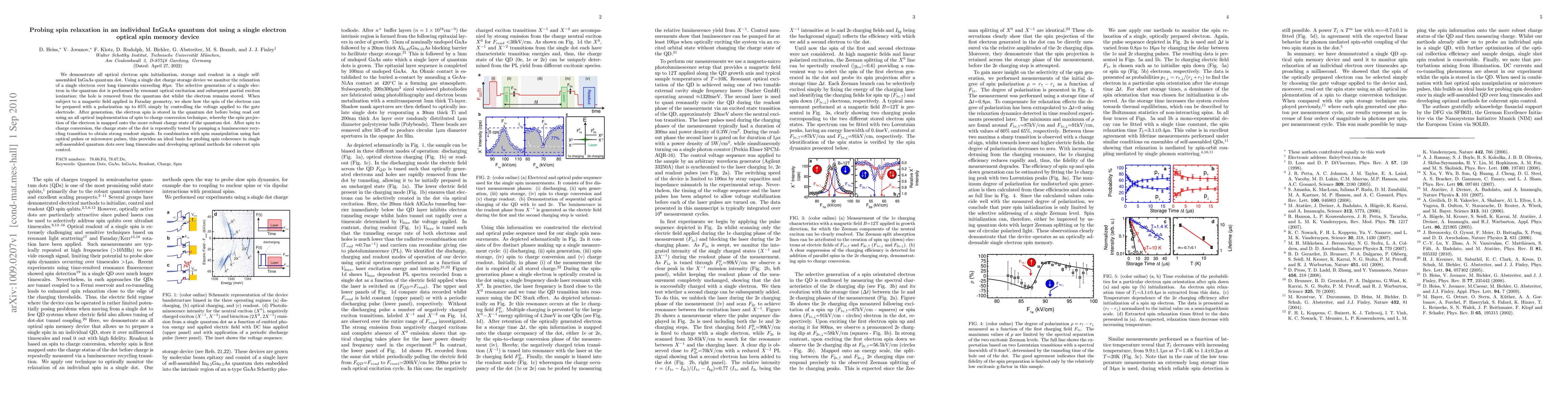 This paper demonstrates all-optical initialization, storage, and readout of a single electron's spin in a self-assembled InGaAs quantum dot, achieving electron spin preparation with up to 65% polarization. The study employs optical spin memory techniques to probe spin relaxation over timescales exceeding 40 microseconds.