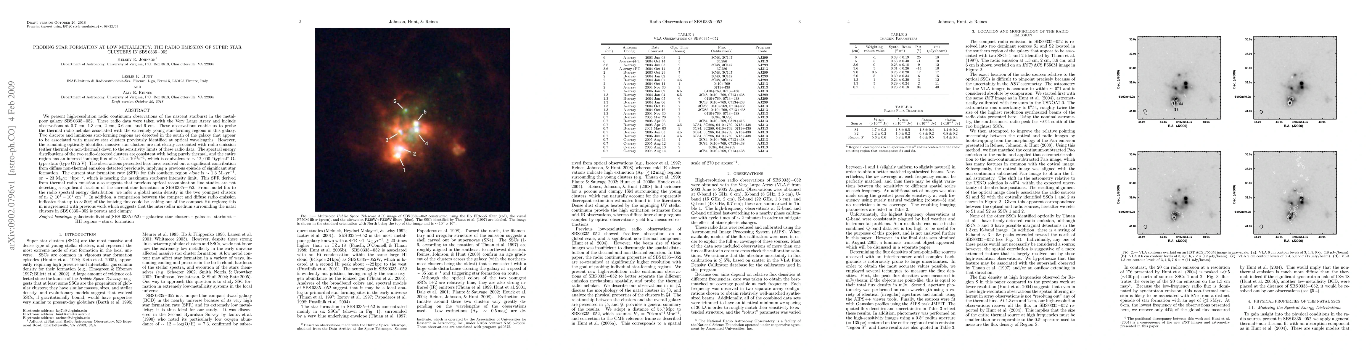 We present high-resolution radio continuum observations of the nascent starburst in the metal-poor galaxy SBS 0335-052. These radio data were taken with the Very Large Array and include observations at 0.7cm, 1.3cm, 2cm, 3.6cm, and 6cm. These observations enable us to probe the thermal radio nebulae associated with the extremely young star-forming regions in this galaxy. Two discrete and luminous star-forming regions are detected in the south of the galaxy that appear to be associated with massive star clusters previously identified at optical wavelengths. However, the remaining optically-identified massive star clusters are not clearly associated with radio emission (either thermal or non-thermal) down to the sensitivity limits of these radio data. The spectral energy distributions of the two radio-detected clusters are consistent with being purely thermal, and the entire region has an inferred ionizing flux of ~1.2 x 10^ 53 s^-1, which is equivalent to ~12,000 "typical" O-type stars (type O7.5 V). The observations presented here have resolved out a significant contribution from diffuse non-thermal emission detected previously, implying a previous episode of significant star formation. The current star formation rate (SFR) for this southern region alone is ~1.3 M_sun yr^-1, or ~ 23M_sun yr^-1 kpc^-2. This SFR derived from thermal radio emission also suggests that previous optical recombination line studies are not detecting a significant fraction of the current star formation in SBS 0335-052. From model fits to the radio spectral energy distribution, we infer a global mean density in the two youngest clusters of n_e > 10^3-10^4 cm^-3. In addition, a comparison between the compact and diffuse radio emission indicates that up to ~50% of the ionizing flux could be leaking out of the compact HII regions.