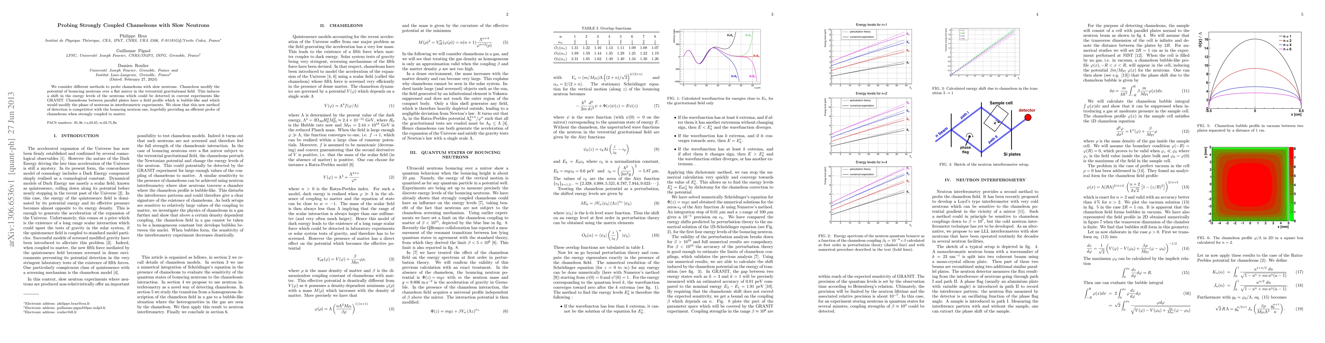 This paper explores methods to detect chameleons using slow neutrons, showing that chameleons can modify neutron energy levels and phase shifts in interferometric experiments. The proposed detection methods are competitive with existing techniques, offering a promising approach to probing strongly coupled chameleons.
