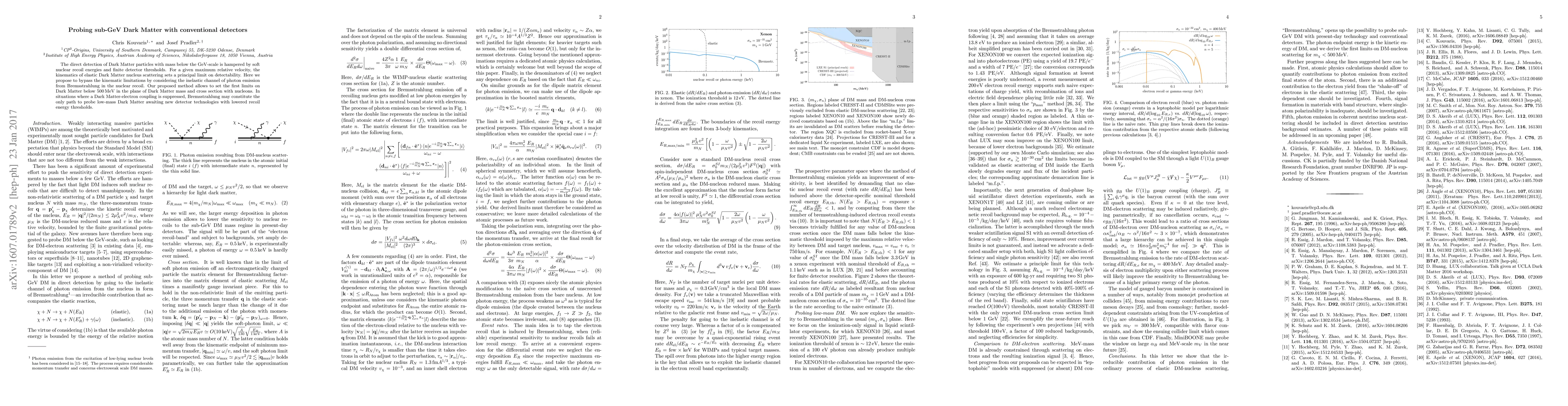 This paper proposes a novel method to detect sub-GeV Dark Matter particles by exploiting the inelastic channel of photon emission during nuclear recoils, thereby overcoming kinematic limitations. It sets new limits on Dark Matter below 500 MeV and suggests that Bremsstrahlung may be the only viable detection path in scenarios where Dark Matter-electron coupling is weak.