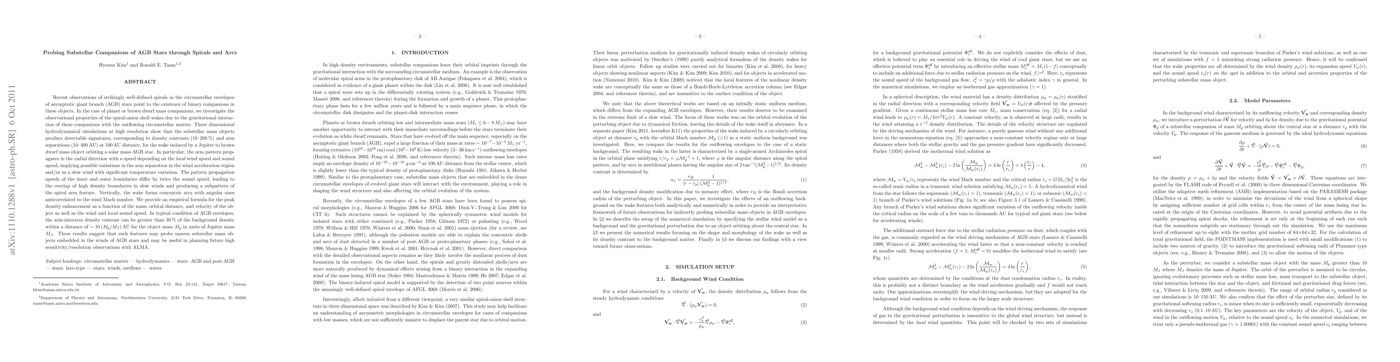 This paper investigates the presence of substellar companions in AGB stars through the analysis of spirals and arcs in their circumstellar envelopes. High-resolution simulations reveal that these companions, ranging from Jupiter to brown dwarf masses, create detectable spiral-onion shell wakes, with arm patterns propagating at speeds dependent on local wind and sound speeds, potentially aiding in the identification of such companions via future high-sensitivity observations.