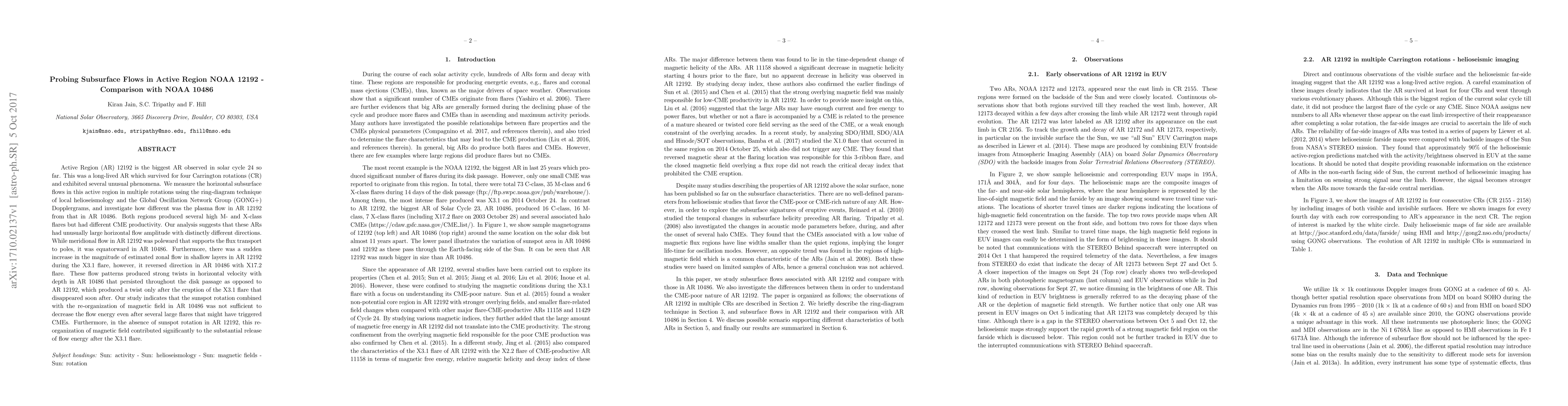 This study investigates subsurface horizontal flows in Active Region 12192 using local helioseismology and compares them with those in AR 10486, revealing distinct flow patterns and differing responses to flares and CMEs. AR 12192 exhibited a poleward meridional flow and a sudden zonal flow change during an X3.1 flare, while AR 10486 showed an equatorward meridional flow and persistent twists in horizontal velocity.