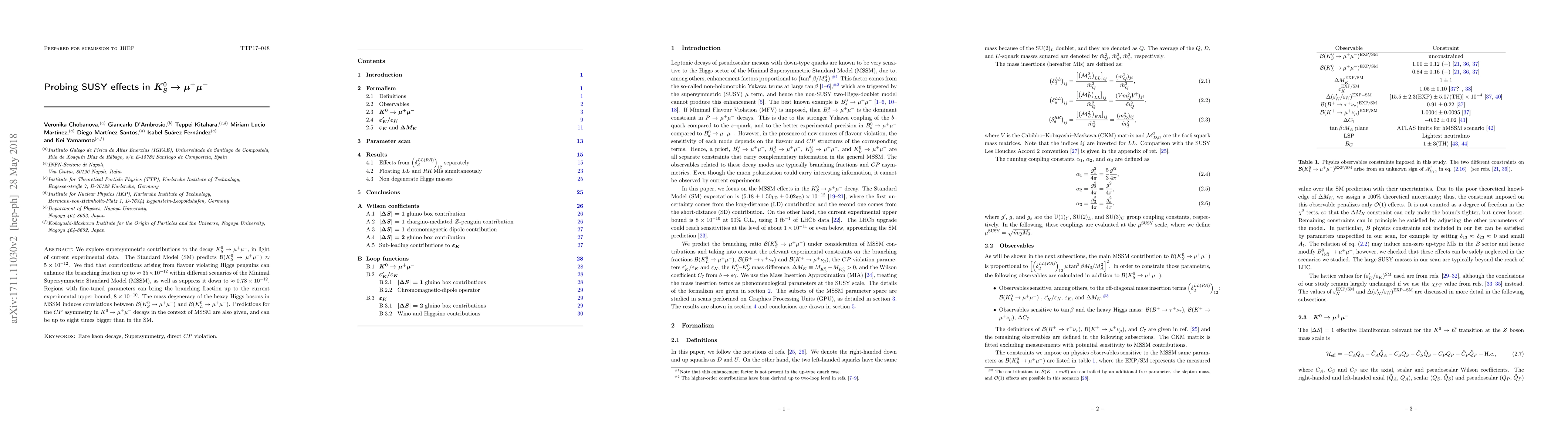 We explore supersymmetric contributions to the decay $K_S^0\rightarrow\mu^+\mu^-$, in light of current experimental data. The Standard Model (SM) predicts $\mathcal{B}(K_S^0\rightarrow\mu^+\mu^-)\approx5\times 10^{-12}$. We find that contributions arising from flavour violating Higgs penguins can enhance the branching fraction up to $\approx 35\times 10^{-12}$ within different scenarios of the Minimal Supersymmetric Standard Model (MSSM), as well as suppress it down to $\approx 0.78\times 10^{-12}$. Regions with fine-tuned parameters can bring the branching fraction up to the current experimental upper bound, $8\times 10^{-10}$. The mass degeneracy of the heavy Higgs bosons in MSSM induces correlations between $\mathcal{B}(K_S^0\rightarrow\mu^+\mu^-)$ and $\mathcal{B}(K_L^0\rightarrow\mu^+\mu^-)$. Predictions for the $CP$ asymmetry in $K^0\rightarrow\mu^+\mu^-$ decays in the context of MSSM are also given, and can be up to eight times bigger than in the SM.
