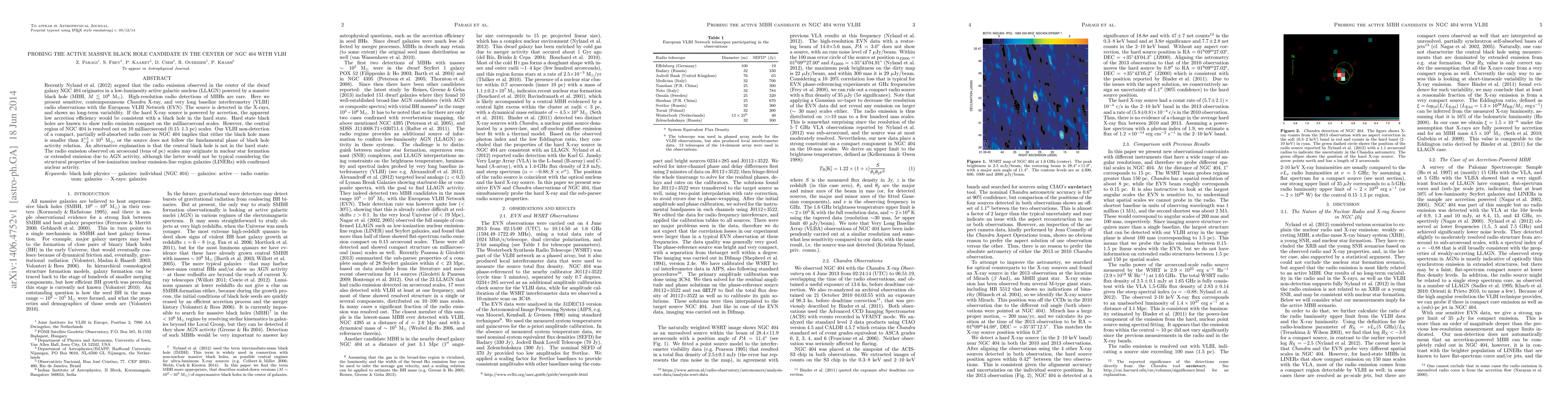 This study investigates the active massive black hole candidate in NGC 404 using VLBI, finding no compact radio core, suggesting a black hole mass below $3^{+5}_{-2}\times10^5$ M$_{\odot}$ or that it may not follow typical black hole activity relations. The observed radio emission on larger scales may indicate nuclear star formation or atypical AGN activity.