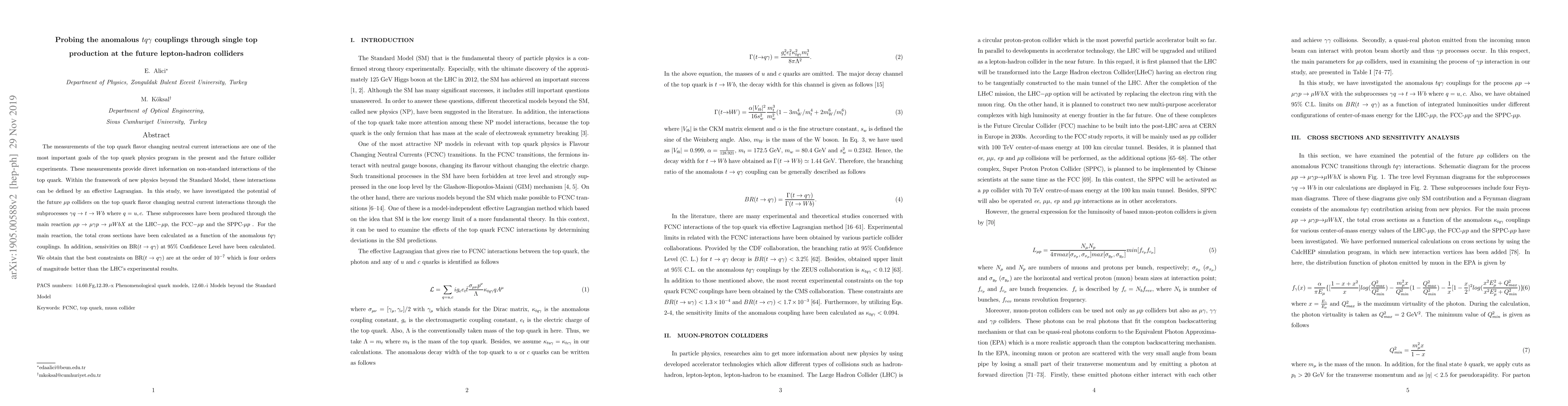 This paper investigates the potential of future muon-proton colliders to probe anomalous $tq\gamma$ couplings via single top production processes. The study finds that these colliders can achieve sensitivities on the branching ratio of $t \rightarrow q \gamma$ at the order of $10^{-7}$, significantly outperforming current LHC results.