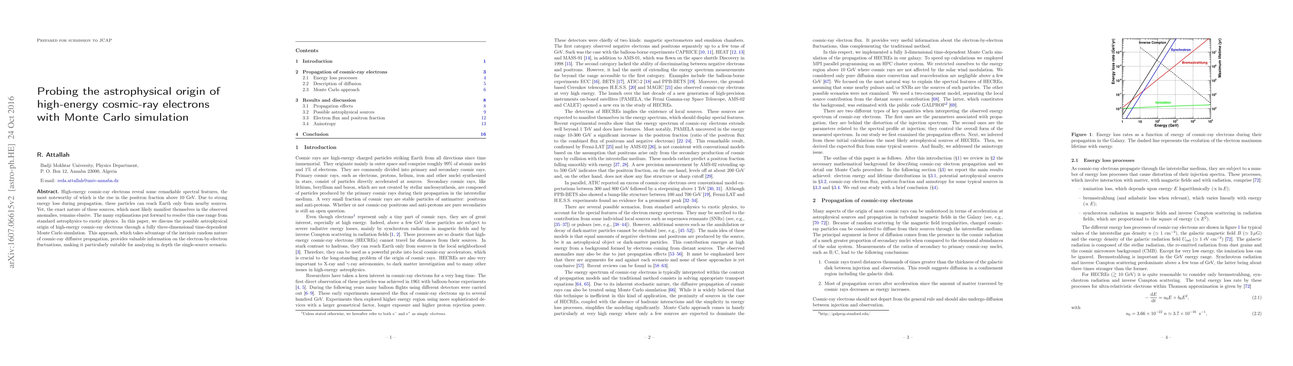 Researchers used a Monte Carlo simulation to investigate the origin of high-energy cosmic-ray electrons, finding that they likely come from nearby sources due to strong energy loss during propagation.