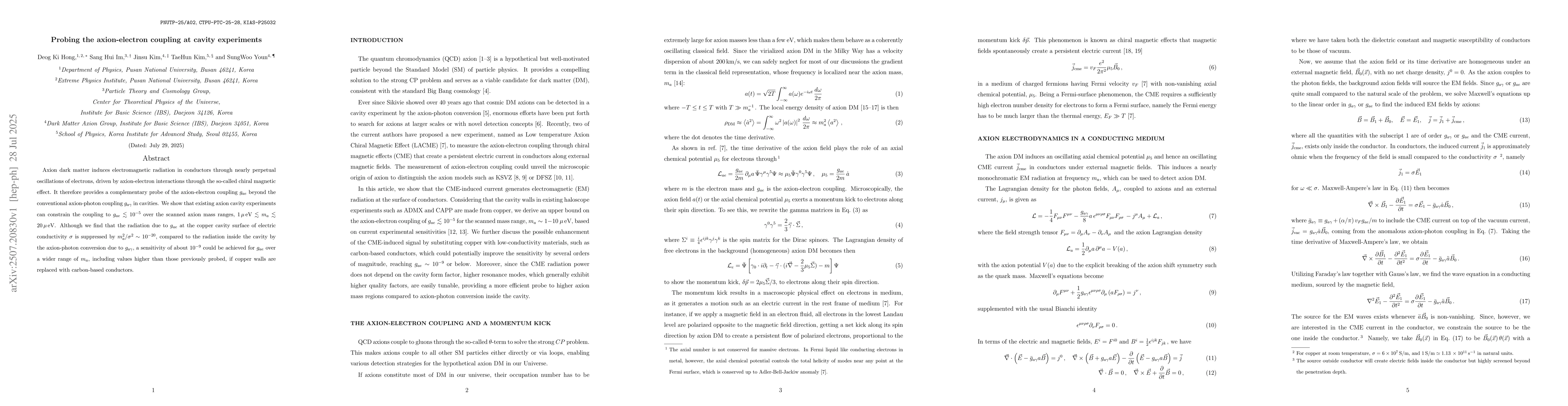 This research introduces a novel approach to probing axion-electron coupling through CME-induced radiation in cavities, offering a complementary method to conventional axion-photon conversion techniques.