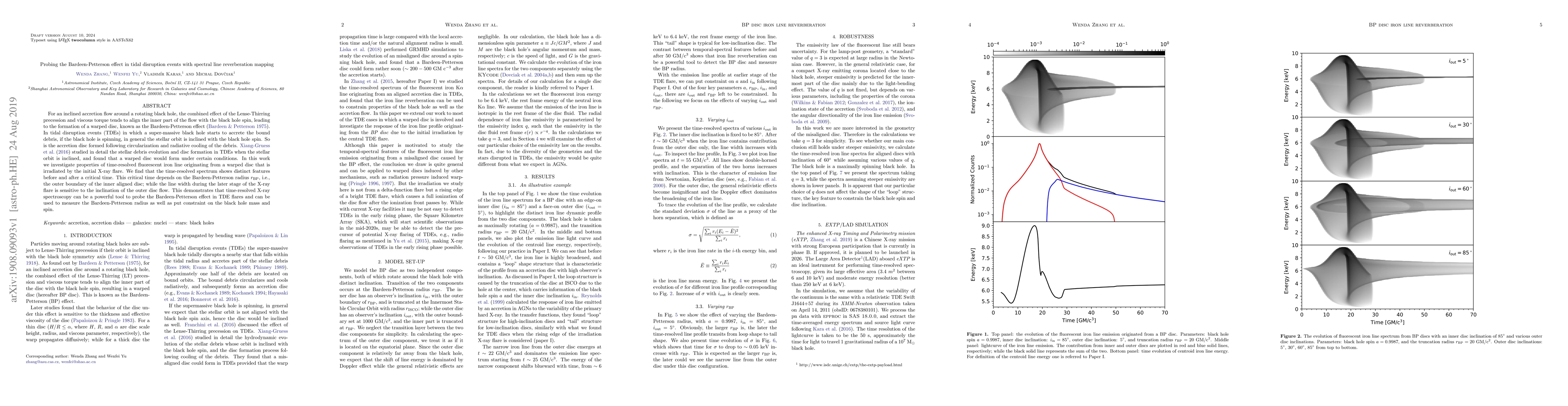 This paper investigates the Bardeen-Petterson effect in tidal disruption events using spectral line reverberation mapping, revealing distinct time-resolved spectral features linked to the Bardeen-Petterson radius and disc inclination, thus demonstrating the potential of X-ray spectroscopy to probe the effect and constrain black hole properties.