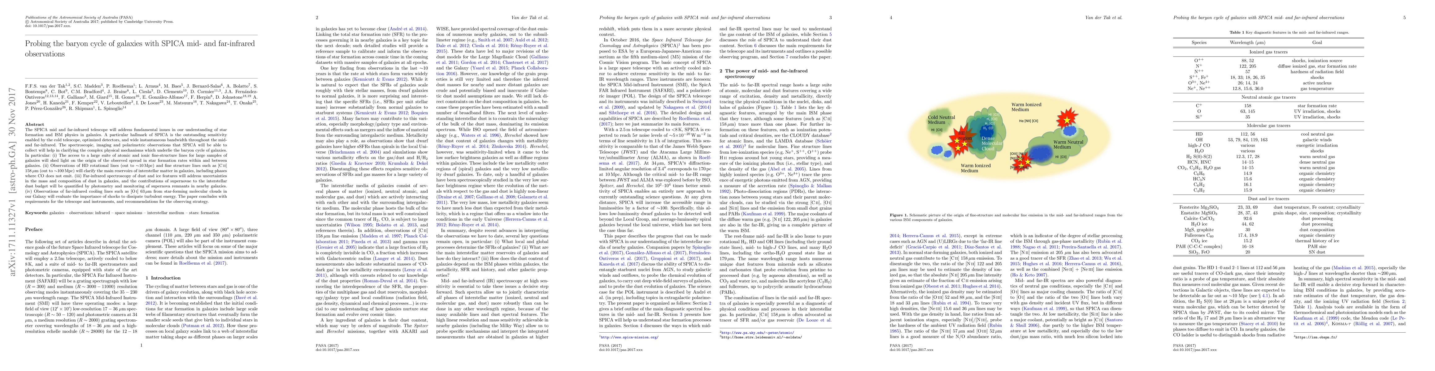 The SPICA mid- and far-infrared telescope aims to enhance our understanding of star formation and interstellar medium physics in galaxies through sensitive spectroscopic, imaging, and polarimetric observations. It will clarify the baryon cycle mechanisms by analyzing atomic and ionic lines, HD rotational lines, and fine structure lines, and by assessing dust and supernova contributions.