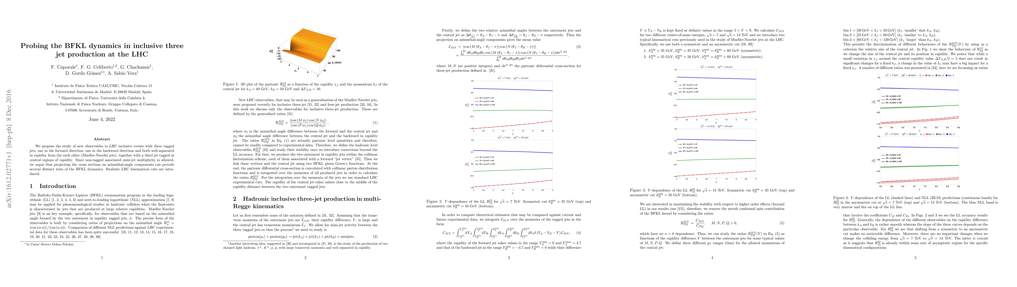 This paper proposes studying new observables in LHC events with three tagged jets to probe BFKL dynamics, focusing on Mueller-Navelet jets and central rapidity jets. It argues that analyzing cross sections via azimuthal-angle components can provide distinct tests of BFKL dynamics, with realistic kinematical cuts applied.