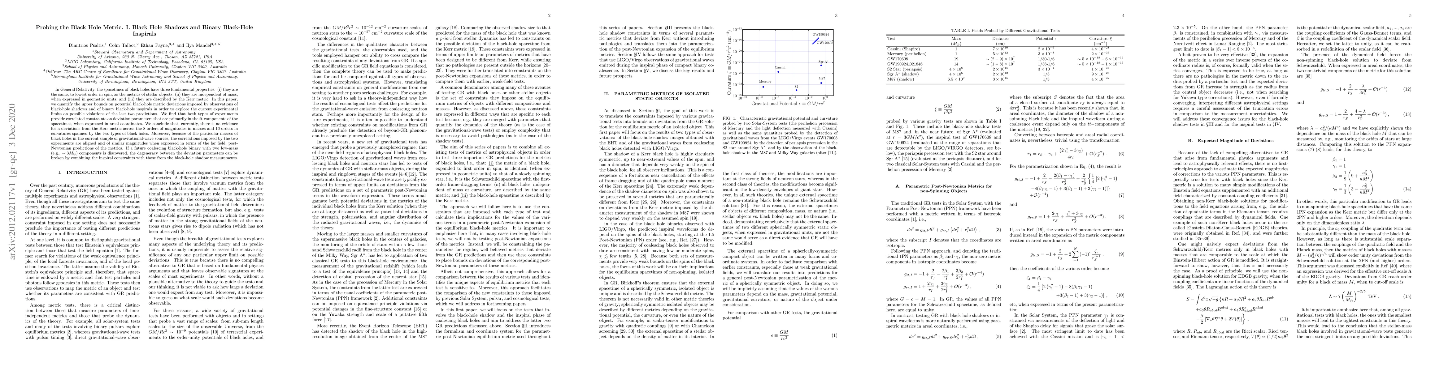 In General Relativity, the spacetimes of black holes have three fundamental properties: (i) they are the same, to lowest order in spin, as the metrics of stellar objects; (ii) they are independent of mass, when expressed in geometric units; and (iii) they are described by the Kerr metric. In this paper, we quantify the upper bounds on potential black-hole metric deviations imposed by observations of black-hole shadows and of binary black-hole inspirals in order to explore the current experimental limits on possible violations of the last two predictions. We find that both types of experiments provide correlated constraints on deviation parameters that are primarily in the tt-components of the spacetimes, when expressed in areal coordinates. We conclude that, currently, there is no evidence for a deviations from the Kerr metric across the 8 orders of magnitudes in masses and 16 orders in curvatures spanned by the two types of black holes. Moreover, because of the particular masses of black holes in the current sample of gravitational-wave sources, the correlations imposed by the two experiments are aligned and of similar magnitudes when expressed in terms of the far field, post-Newtonian predictions of the metrics. If a future coalescing black-hole binary with two low-mass (e.g., ~3 Msun) components is discovered, the degeneracy between the deviation parameters can be broken by combining the inspiral constraints with those from the black-hole shadow measurements.
