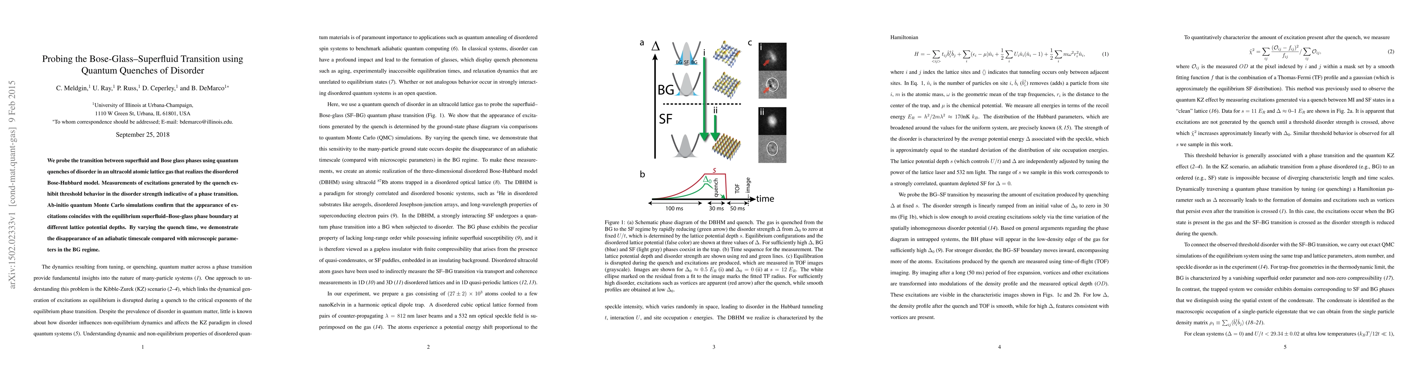 This paper investigates the superfluid-Bose glass phase transition in an ultracold atomic lattice gas via quantum quenches of disorder, revealing threshold behavior in excitations. Quantum Monte Carlo simulations confirm the transition's occurrence at the equilibrium phase boundary, and varying quench time shows the absence of an adiabatic timescale in the Bose glass regime.