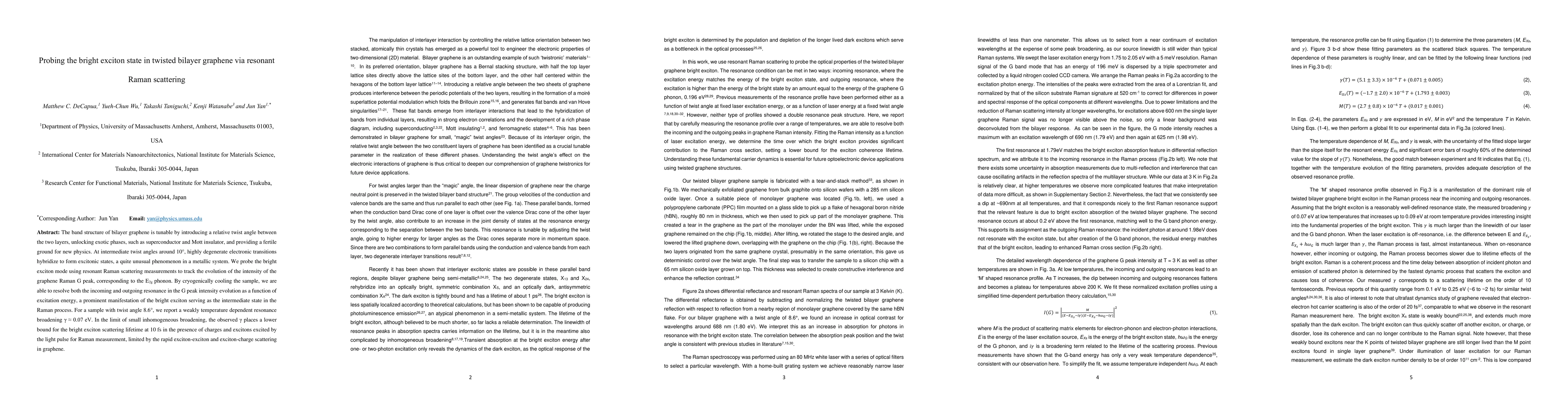 This paper investigates the bright exciton state in twisted bilayer graphene using resonant Raman scattering, revealing its role as an intermediate state in the Raman process. The study finds a scattering lifetime of 10 fs for the bright exciton, constrained by rapid exciton-exciton and exciton-charge interactions.