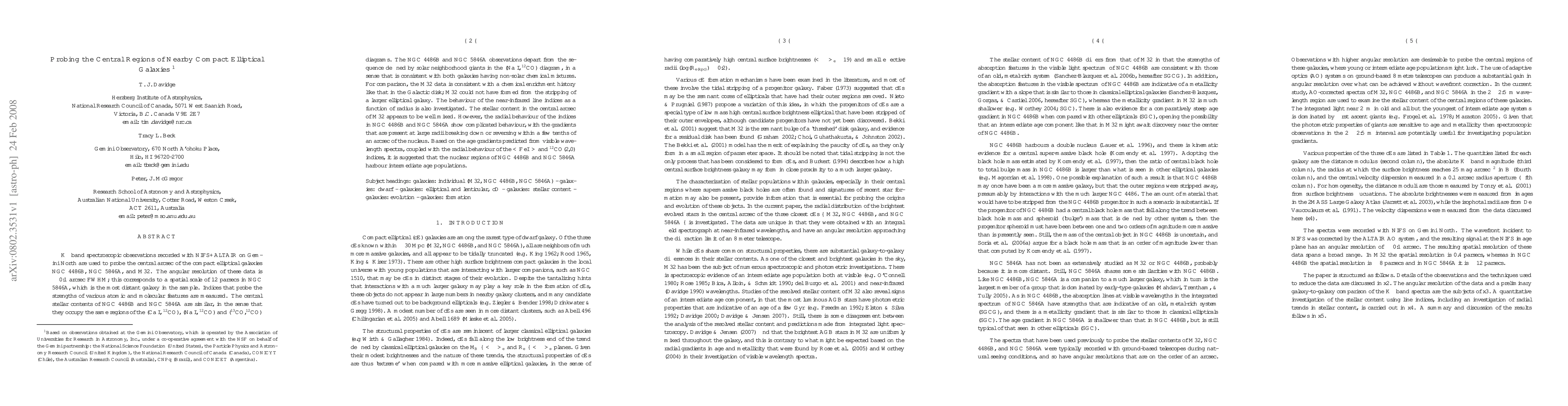 K-band spectroscopic observations recorded with NIFS+ALTAIR on Gemini North are used to probe the central arcsec of the compact elliptical galaxies NGC 4486B, NGC 5846A, and M32. The angular resolution of these data is ~0.1 arcsec FWHM. The central stellar contents of NGC 4486B and NGC 5846A are similar, in the sense that they occupy the same regions of the (Ca I, 12CO), (Na I, 12CO) and (13CO, 12CO) diagrams. The NGC 4486B and NGC 5846A observations depart from the sequence defined by solar neighborhood giants in the (Na I, 12CO) diagram, in a sense that is consistent with both galaxies having non-solar chemical mixtures. For comparison, the M32 data is consistent with a chemical enrichment history like that in the Galactic disk; M32 could not have formed from the stripping of a larger elliptical galaxy. The behaviour of the near-infrared line indices as a function of radius is also investigated. The radial gradients that are present in NGC 4486B and NGC 5846A at large radii break down or reverse within the central few tenths of an arcsec. Evidence is presented that the nuclear regions of NGC 4486B and NGC 5846A harbour intermediate age populations.